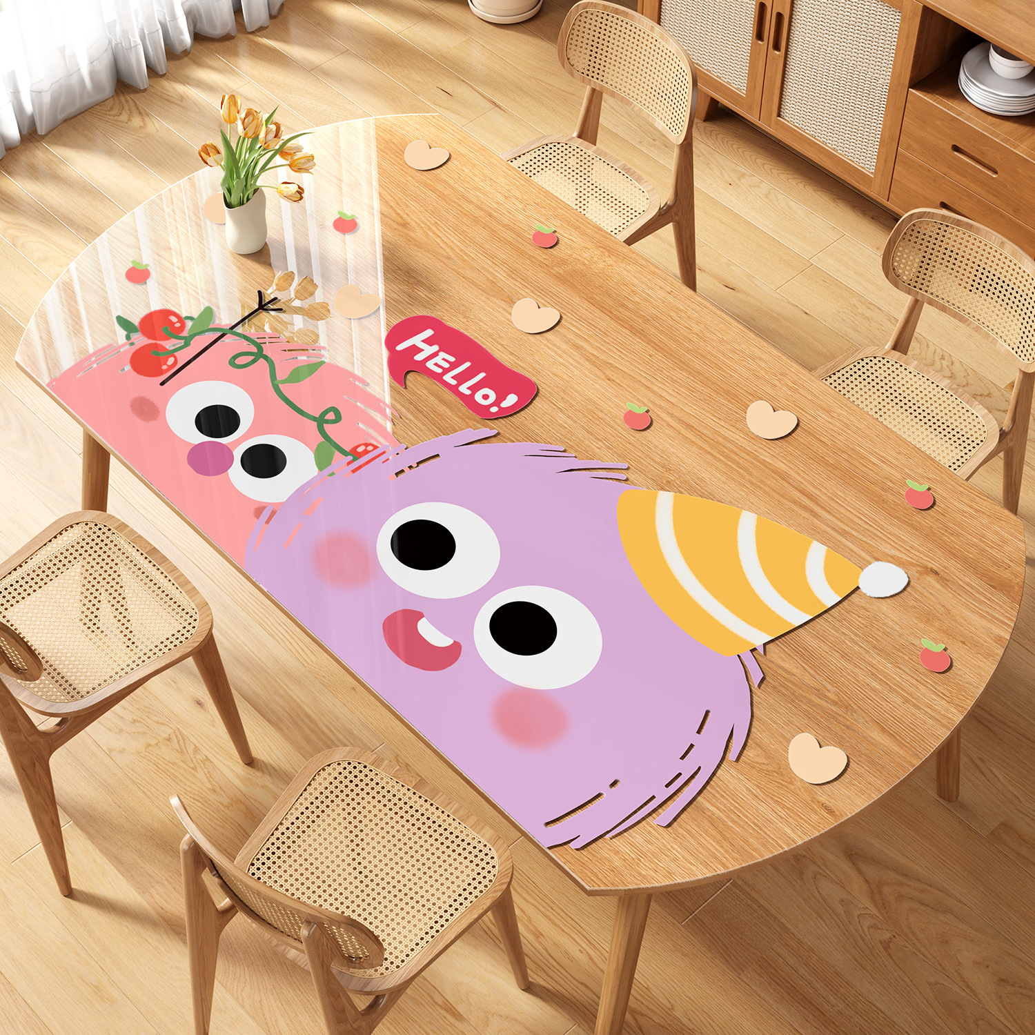 도파민 투명한 타원형 식탁 매트 방수 및 오일 증거 PVC 부드러운 유리 빛 고급 고급 데스크탑 보호 테이블 천스토어 가기
