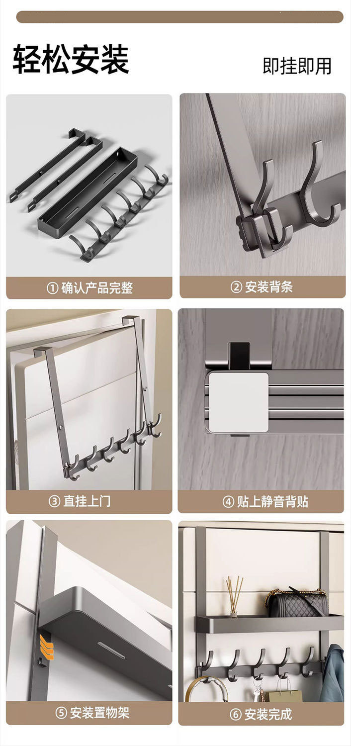 도어 훅 비 천공 벽 교수형 의류 가방 보관 랙 침실 후크 보관 랙 기숙사 문 옷걸이스토어 가기