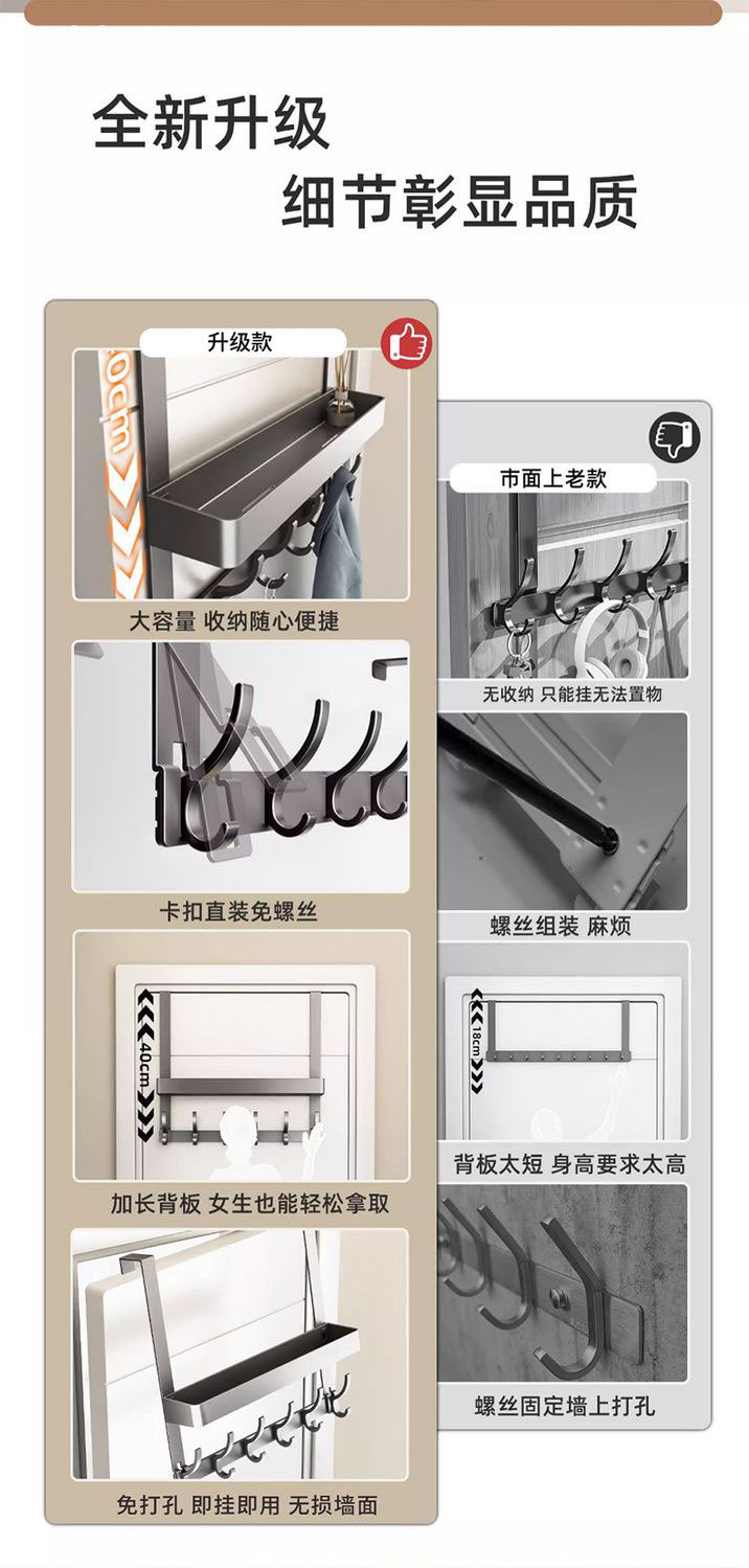도어 훅 비 천공 벽 교수형 의류 가방 보관 랙 침실 후크 보관 랙 기숙사 문 옷걸이