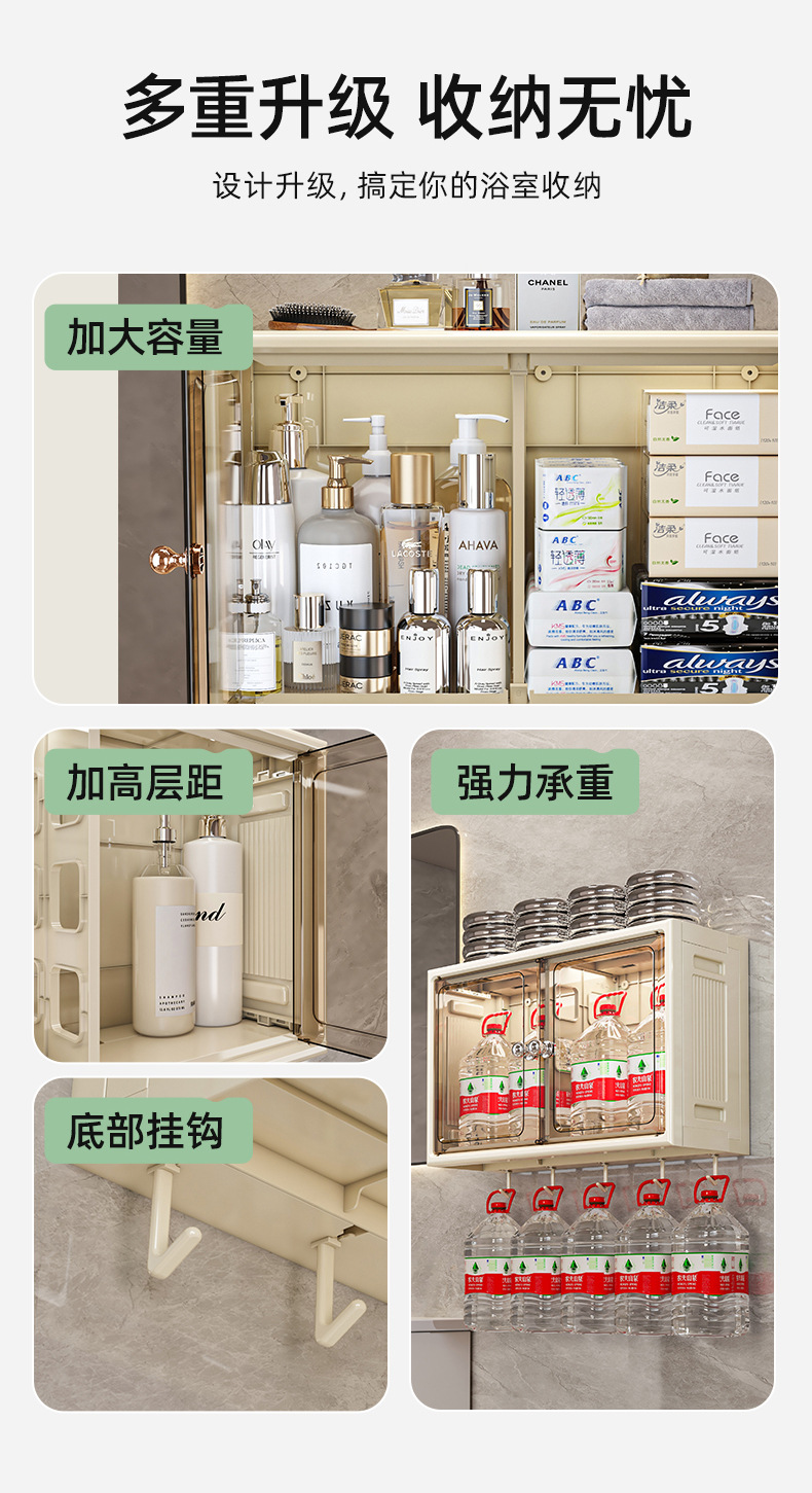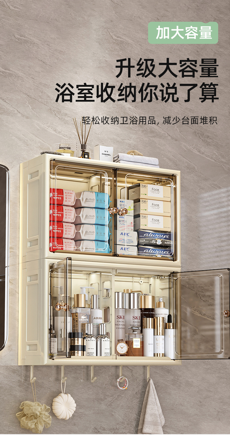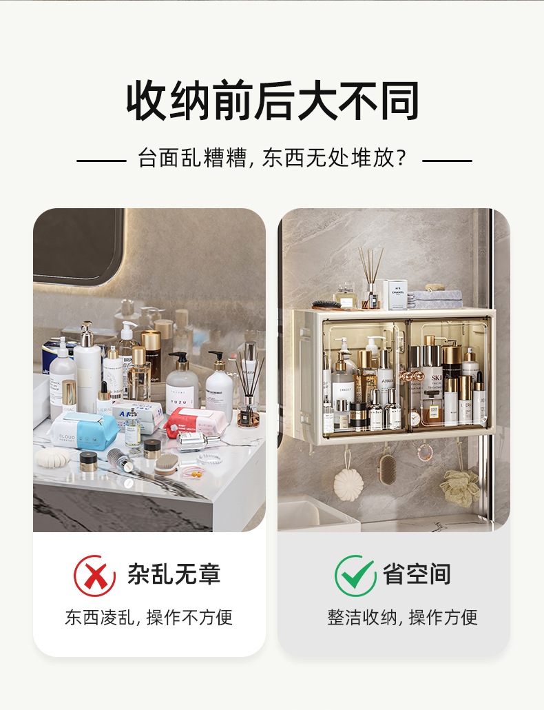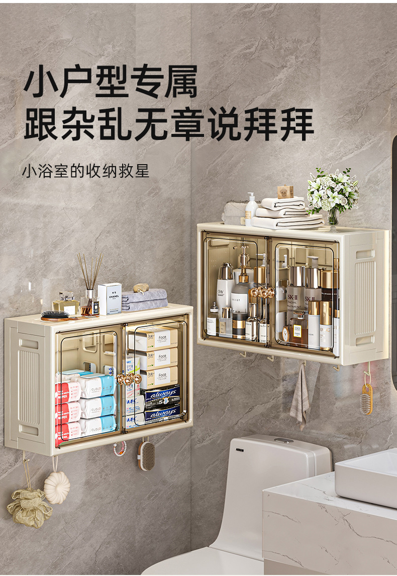 -접이식 벽걸이 형 보관 화장실 벽 펀치 프리 화장품 보관 상자 욕실 세면대 방진 보관스토어 가기