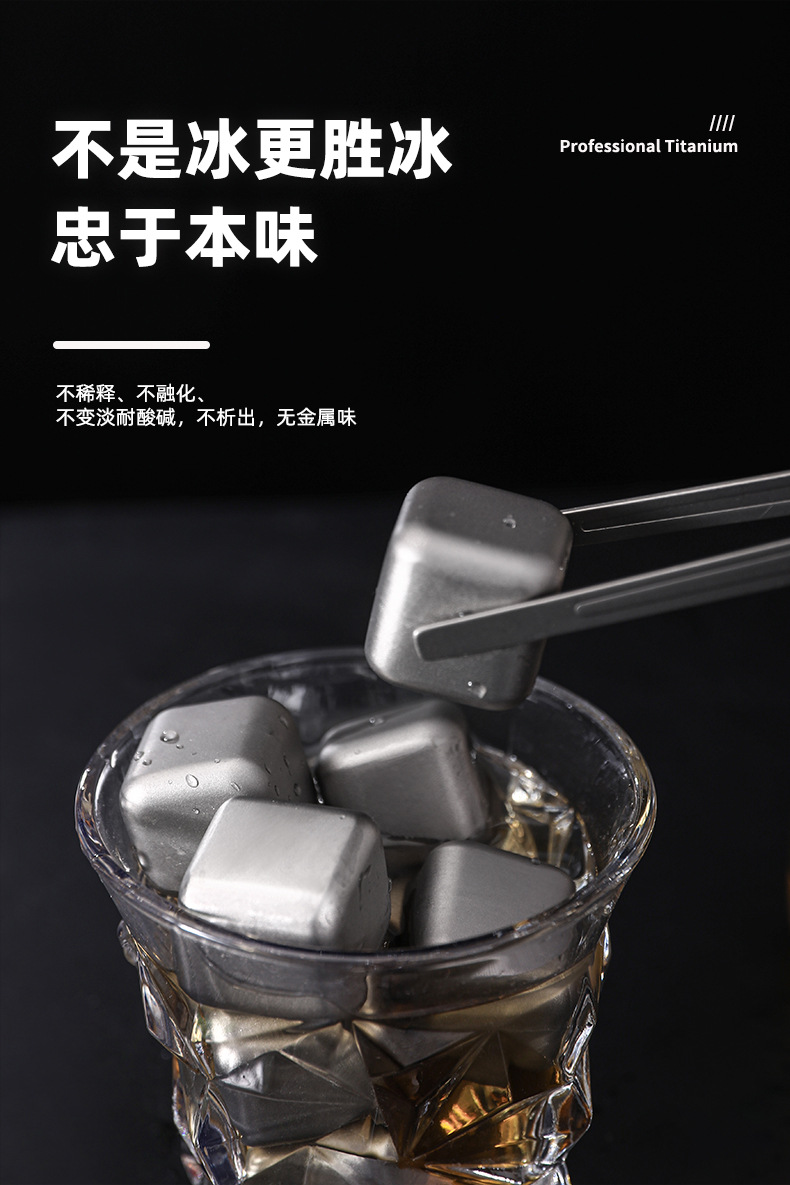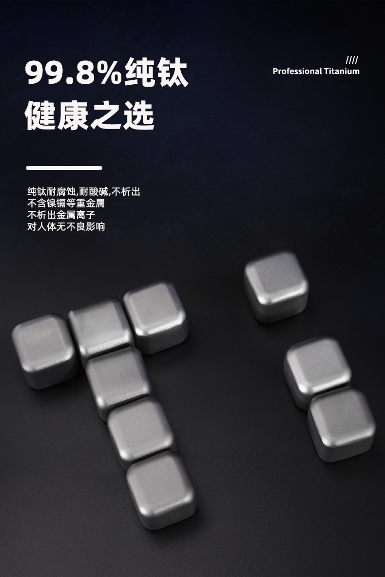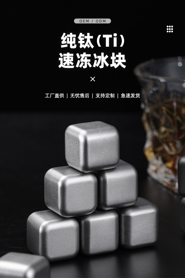 순수한 티타늄 얼음 블록 가정용 빠른 냉동 위스키 Icum 와인 스톤 창조적 인 재활용 빠른 냉동 순수 티타늄 금속 얼음 과립