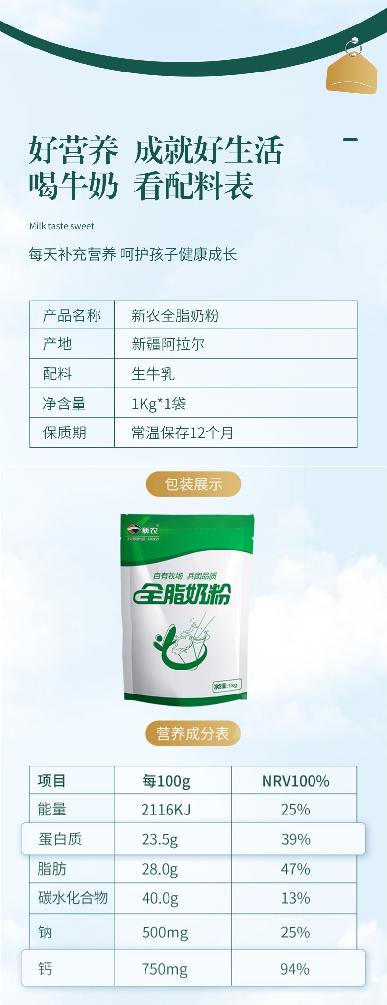 신장 신공 우유 분말 학생 중년 및 노인 우유 분말 전유 분말 1 KG/가방 중국 본토
