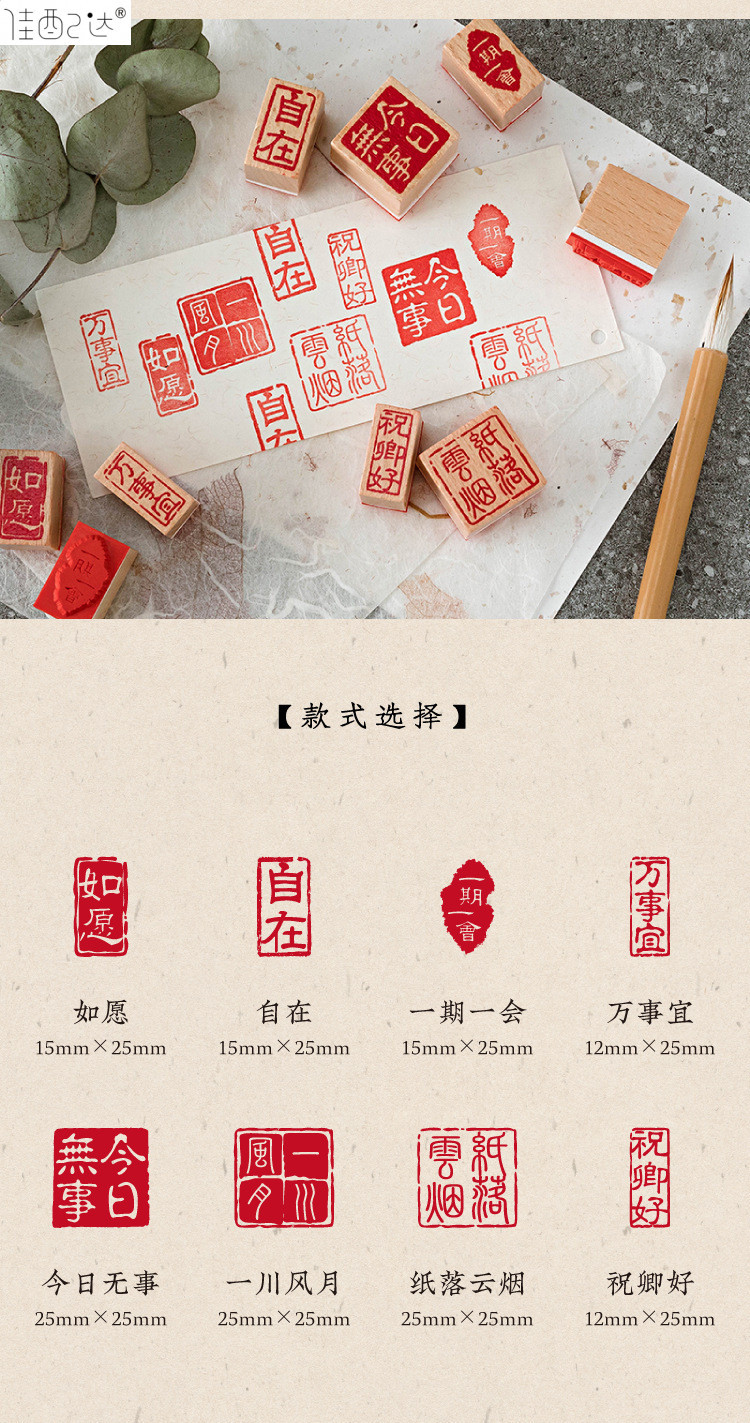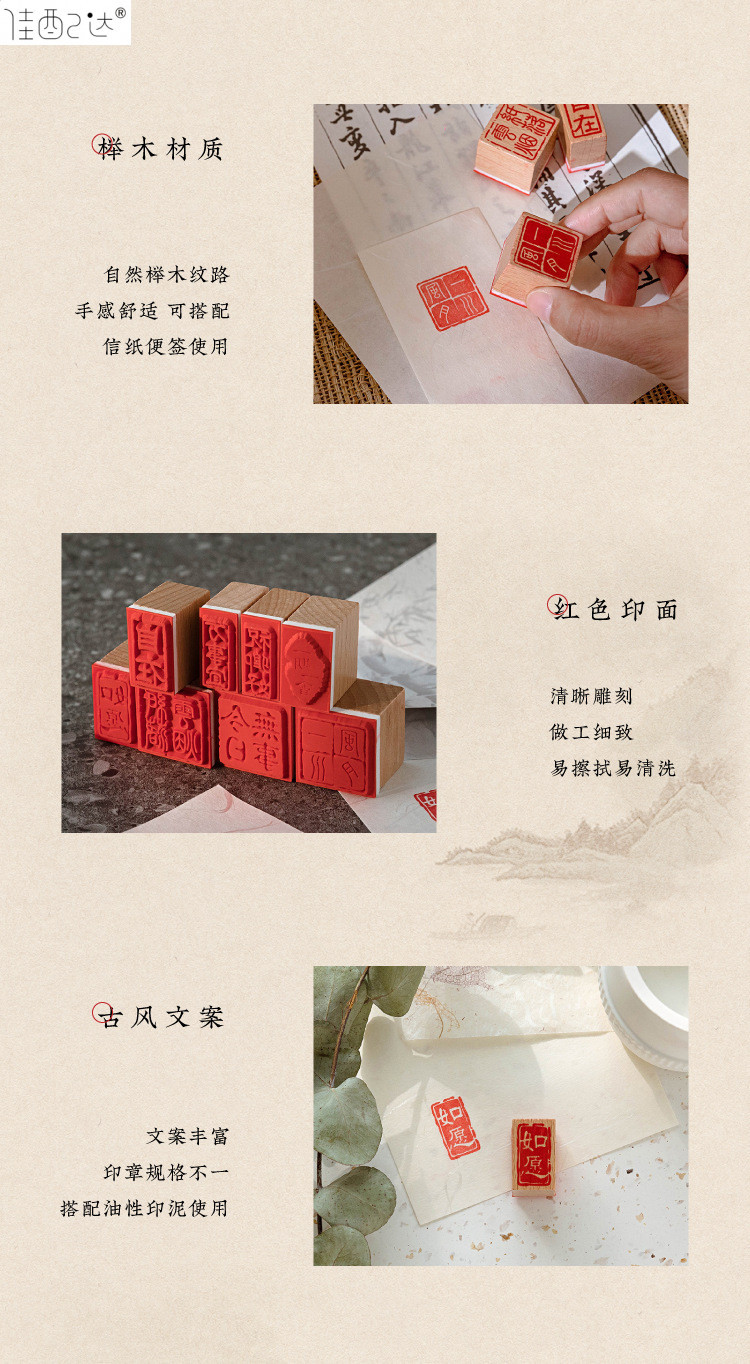 귀여운 스몰 사이즈 너도밤 봉인 레저 씰 여러 광장 골동품 중국 축복 DIY 어린이 손 계정 소재 작은 선물