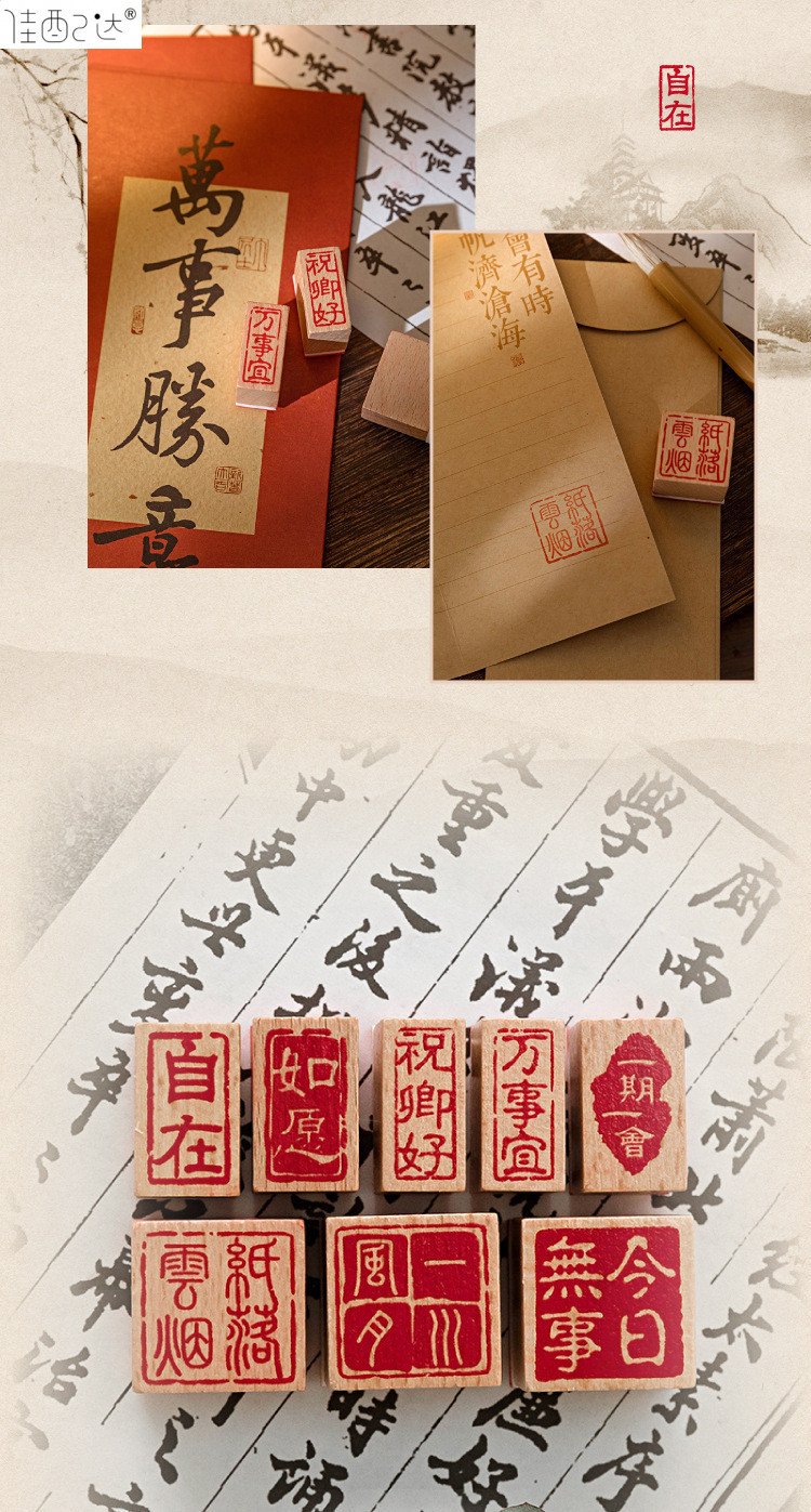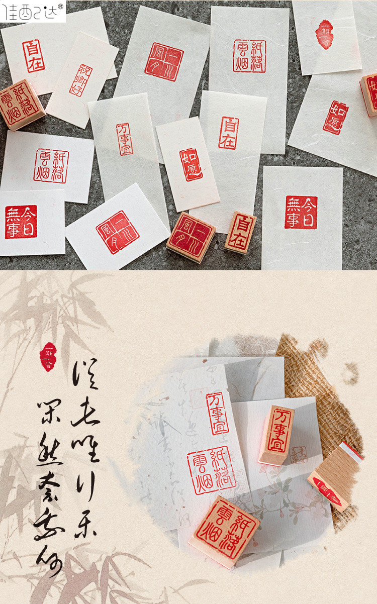 귀여운 스몰 사이즈 너도밤 봉인 레저 씰 여러 광장 골동품 중국 축복 DIY 어린이 손 계정 소재 작은 선물스토어 가기