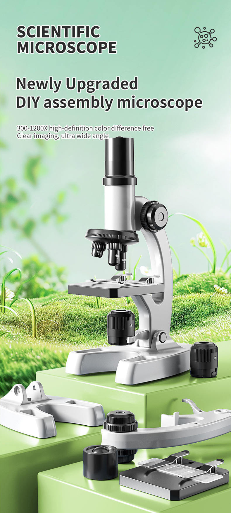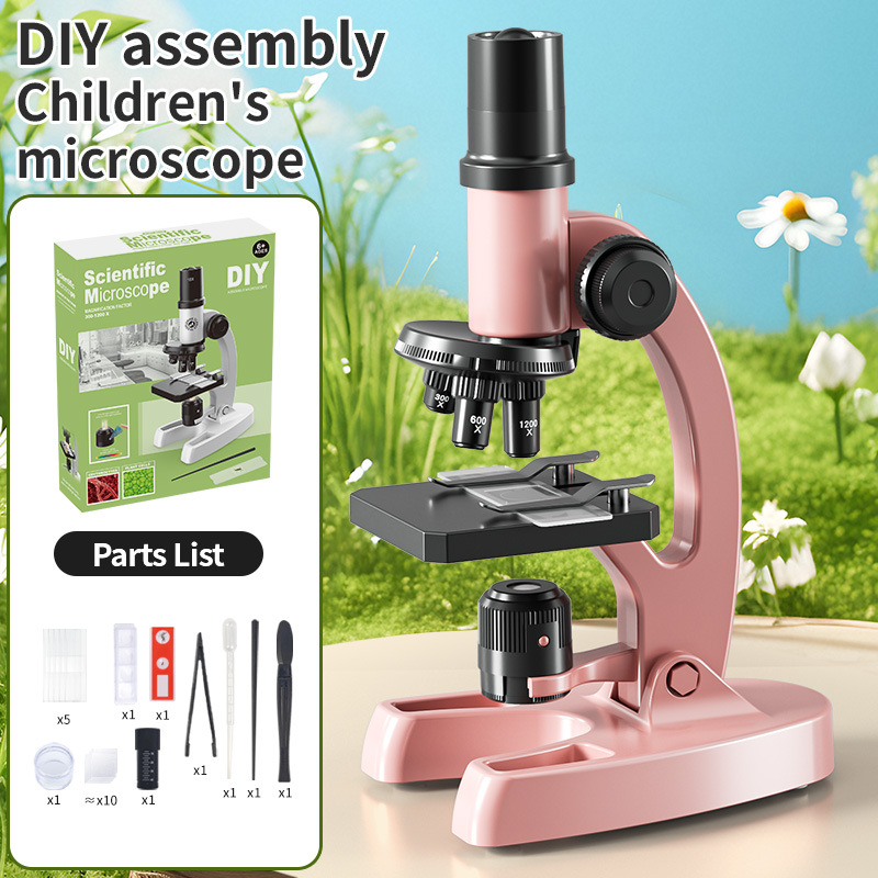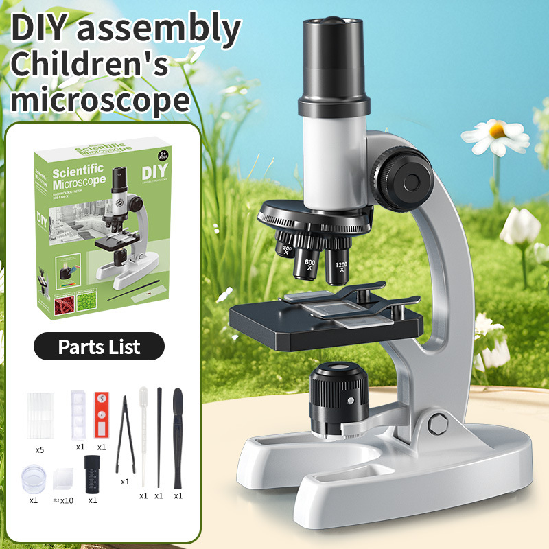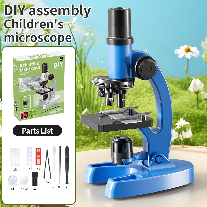 국경을 넘나 드는 DIY 셀프 로딩 데스크탑 현미경 1200 배 과학 현미경 세트 초등학생 중학교 생물학적 세포