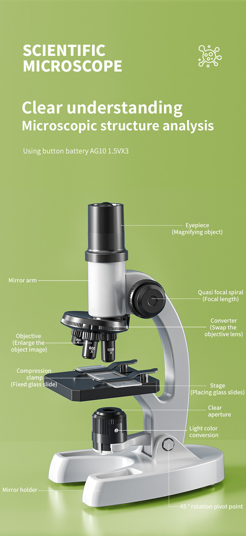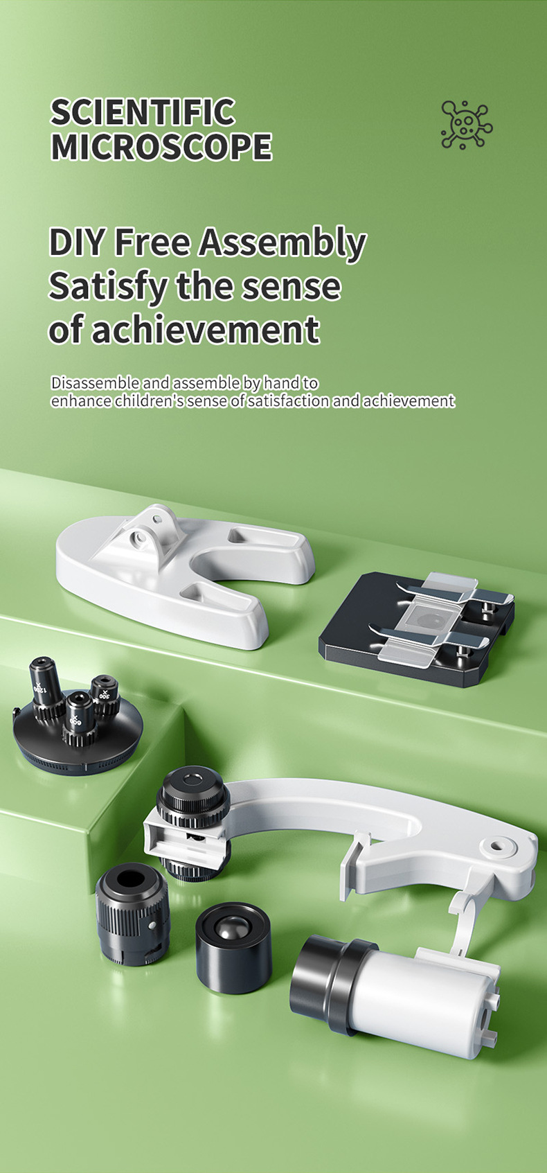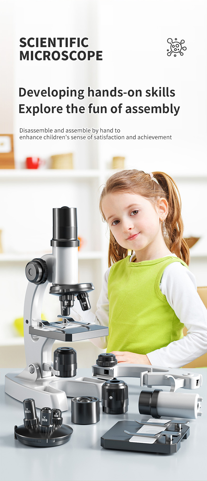국경을 넘나 드는 DIY 셀프 로딩 데스크탑 현미경 1200 배 과학 현미경 세트 초등학생 중학교 생물학적 세포