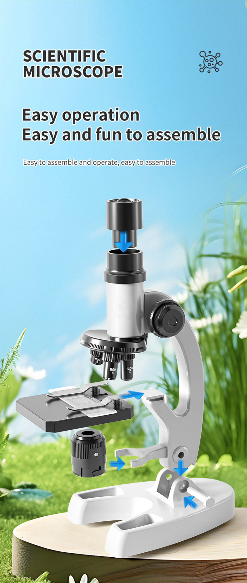 국경을 넘나 드는 DIY 셀프 로딩 데스크탑 현미경 1200 배 과학 현미경 세트 초등학생 중학교 생물학적 세포스토어 가기
