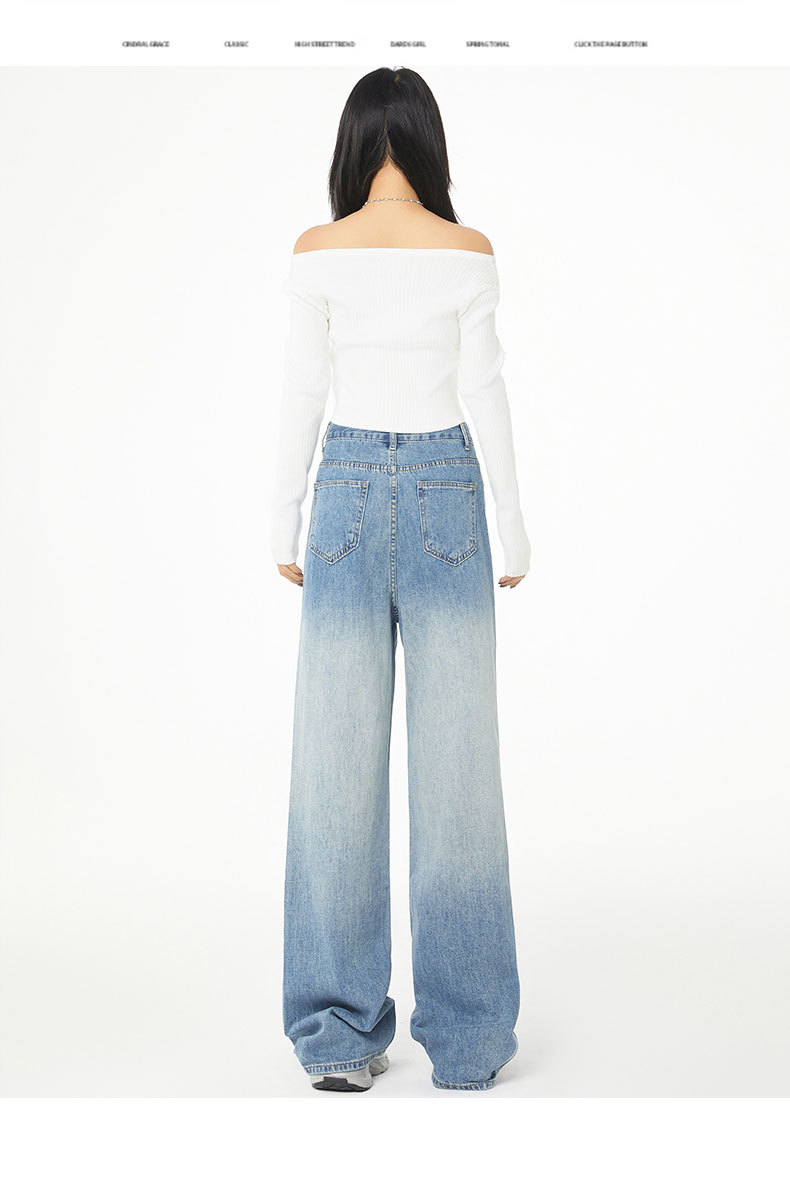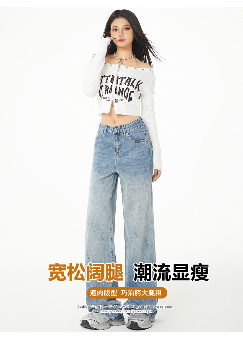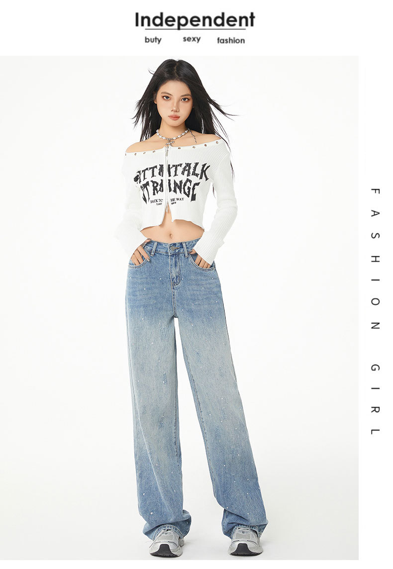 높은 허리 스트레이트 다리 청바지 여성용 여름 얇은 2024 다이아몬드 좁은 넓은 다리 바지를 가진 새로운 한국 스타일 느슨한 캐주얼 바지스토어 가기