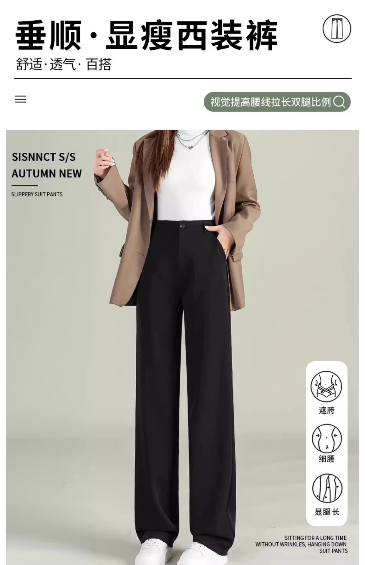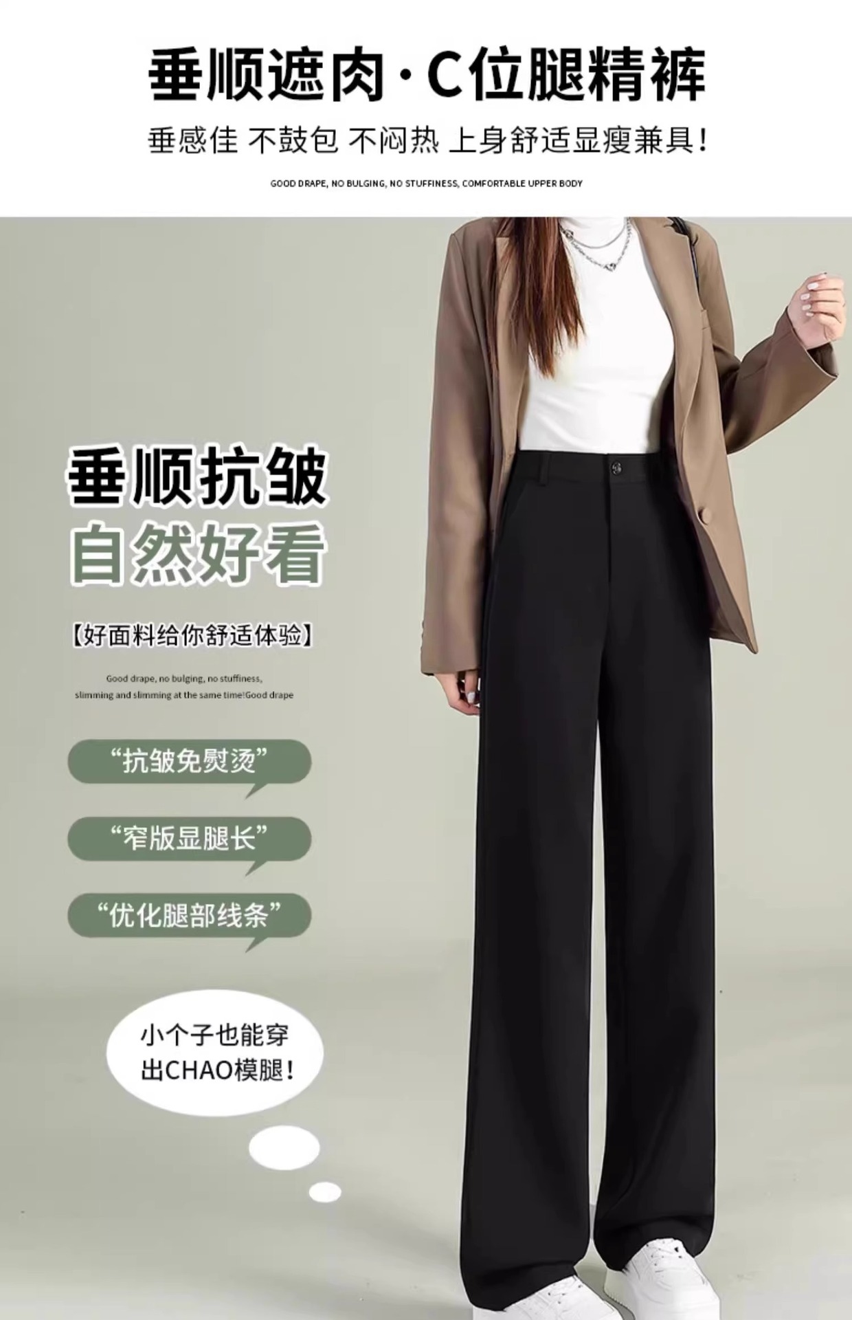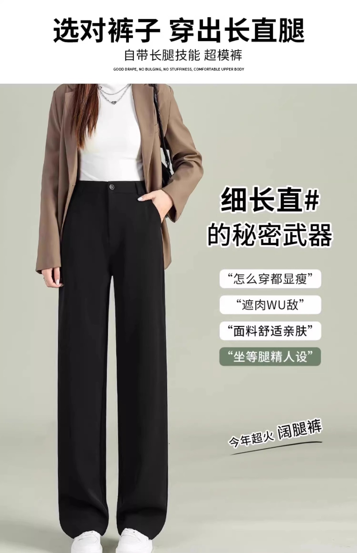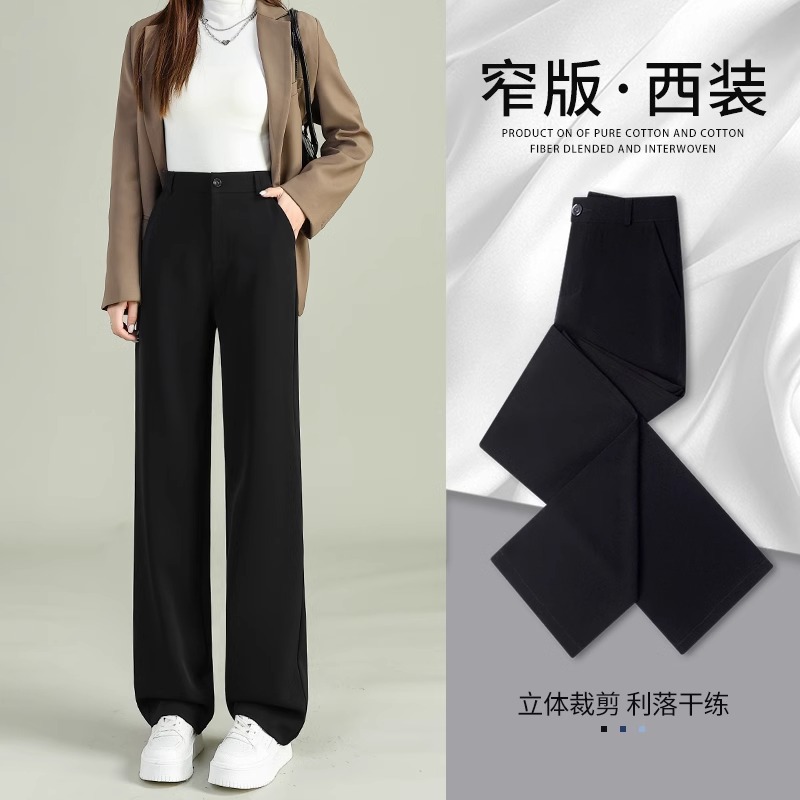 검은 세트 바지 여성의 봄과 가을 2025 새로운 배 모양의 피겨 하이 엔드 슬래그 슬리밍 좁은 넓은 다리 스트레이트 바지스토어 가기