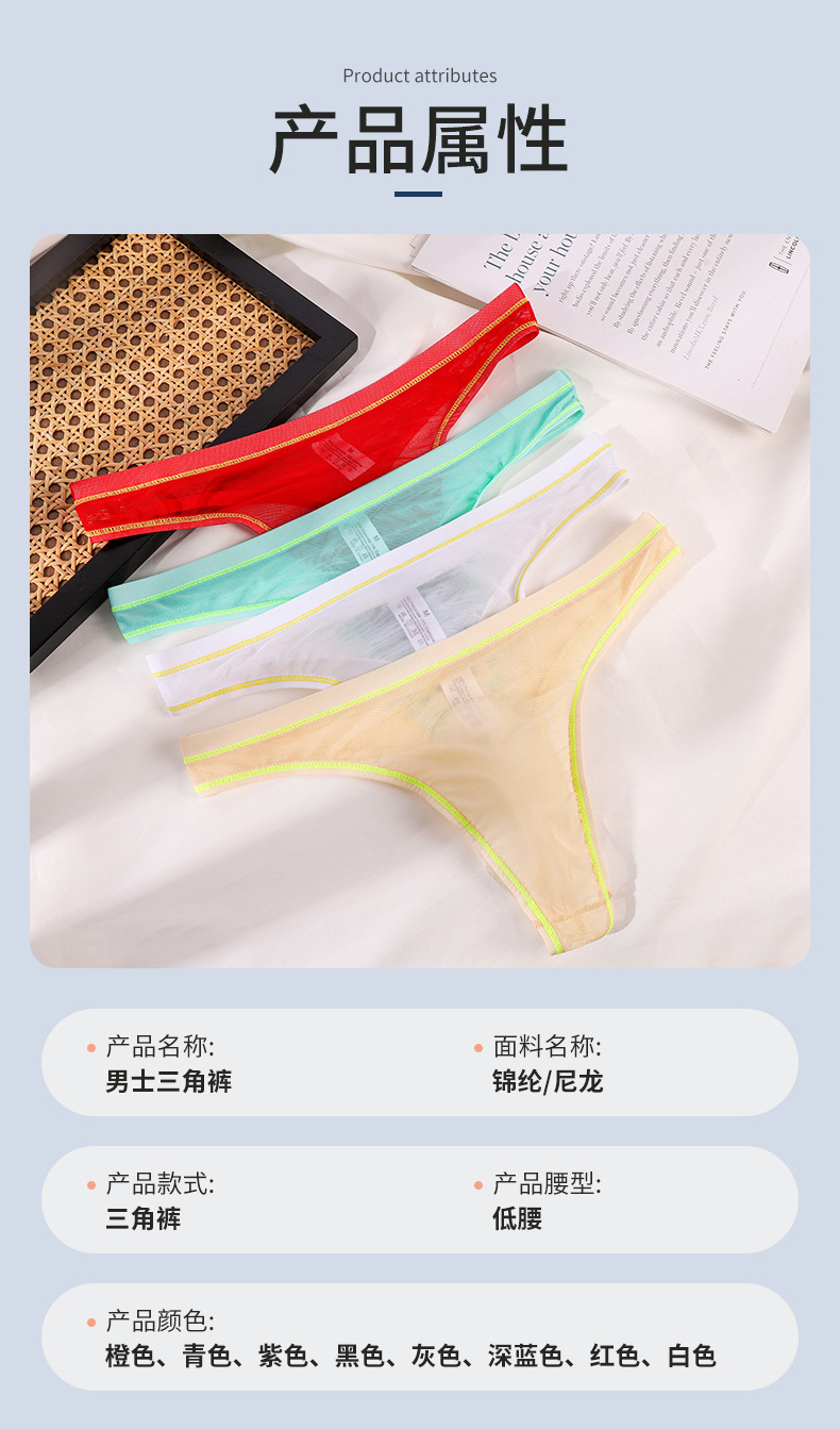 메쉬 남성용 팬티 얇고 편안하며 통기성이 뛰어나고 고탄성 및 시원한 느낌의 남성용 속옷 솔리드 컬러