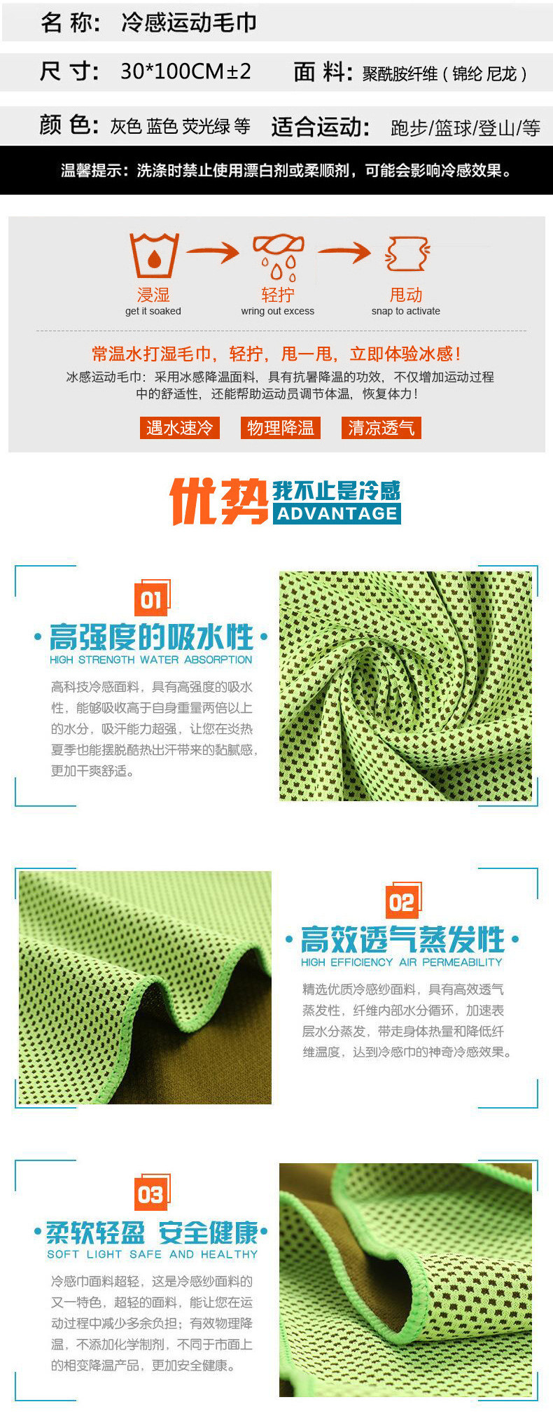 차가운 느낌 수건 30*100 야외 스포츠 냉각 아이스 타월 체육관 2 색 빠른 건조 감기 느낌 스포츠 타월
