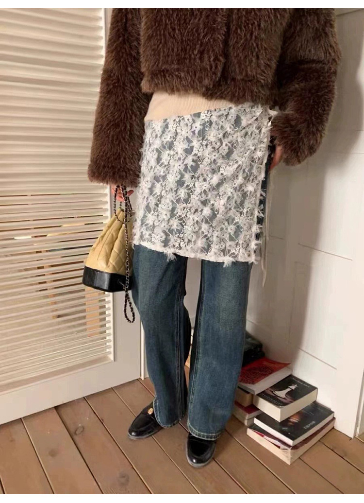 한국 이스트 게이트 스태킹 레이스 패트 커튼 여성 에이프런 페이크 헴 보팅 베일 커튼 블라우스 힙합 커버 하프 길이 스커트