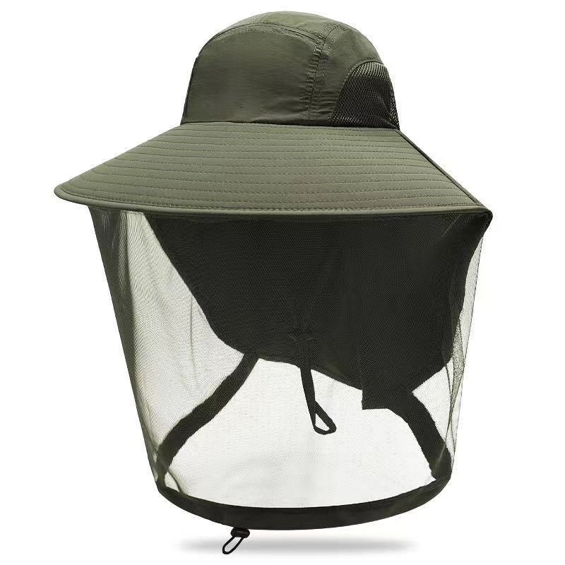 메시 마스크 남성과 여성을위한 모기 방지 및 곤충 음영 모자 여름 야외 큰 Eave 안티 자외선 낚시 캠핑 등산 모자