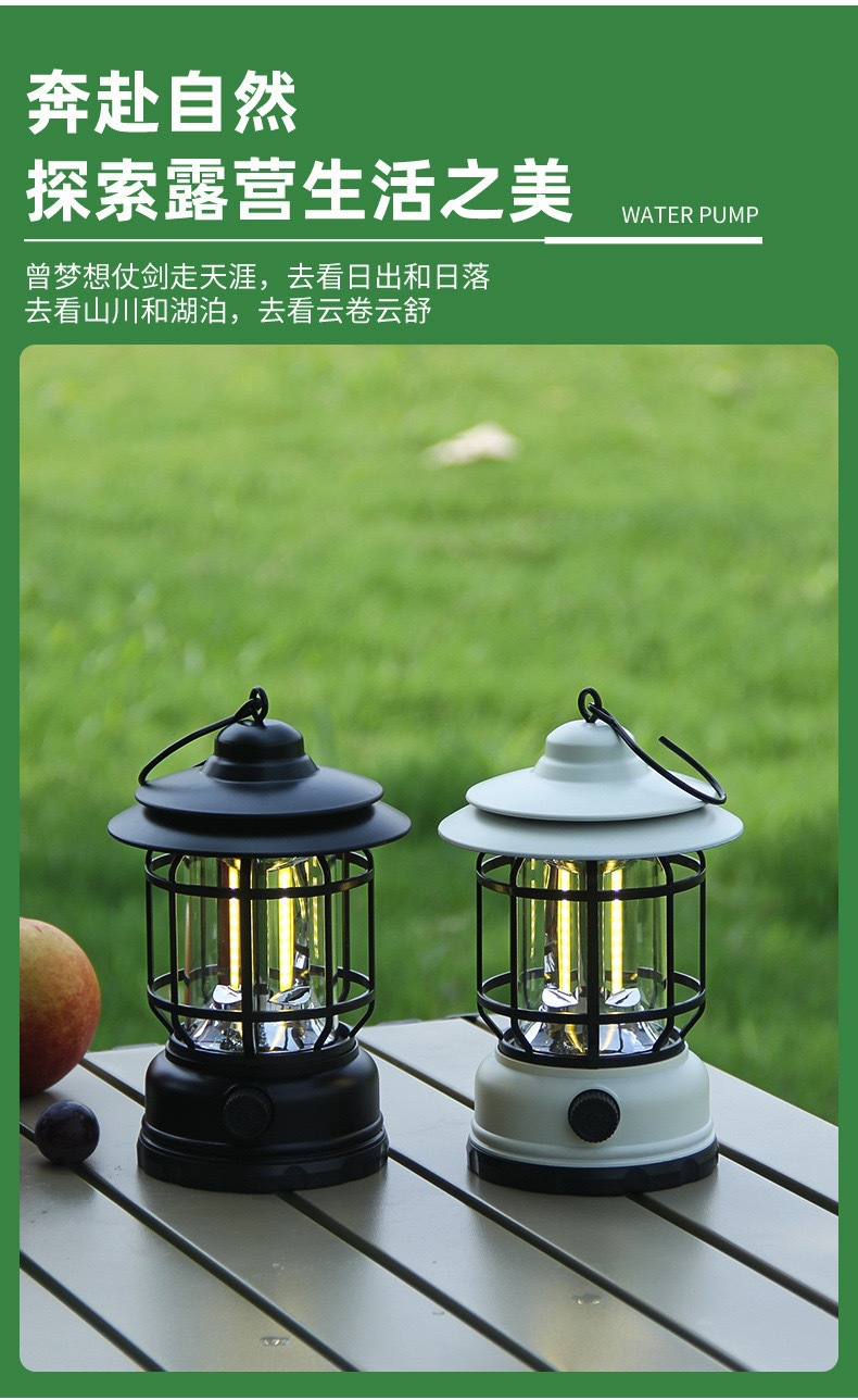 캠핑 램프 야외 램프 조명 말 램프 긴 지구력 캠핑 램프 빠른 충전 분위기 램프 야외 복고풍 텐트 램프