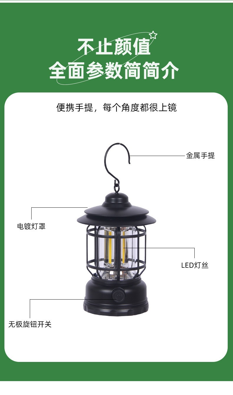 캠핑 램프 야외 램프 조명 말 램프 긴 지구력 캠핑 램프 빠른 충전 분위기 램프 야외 복고풍 텐트 램프스토어 가기