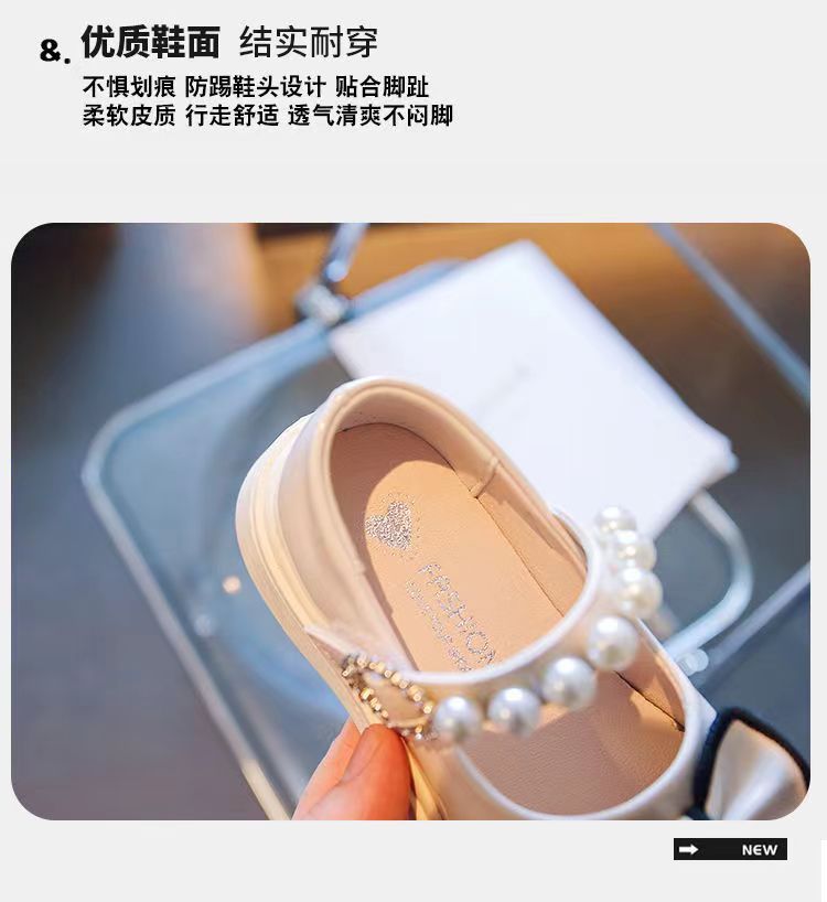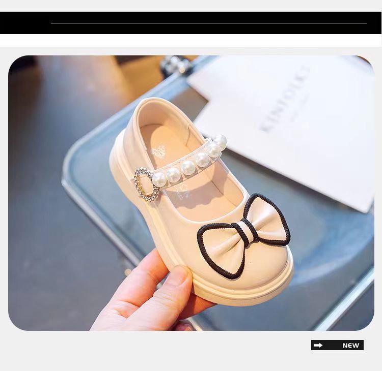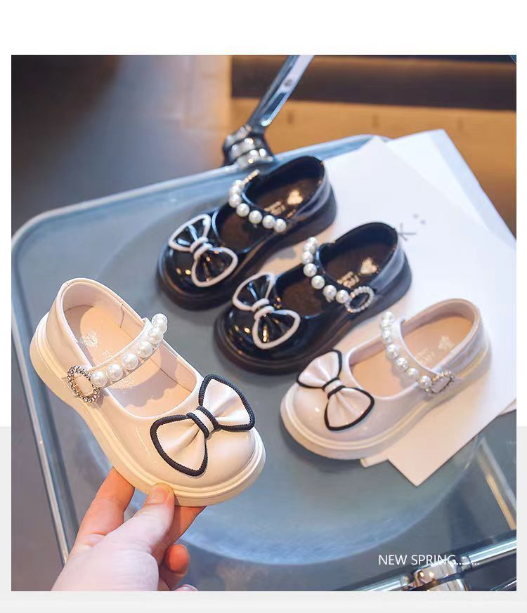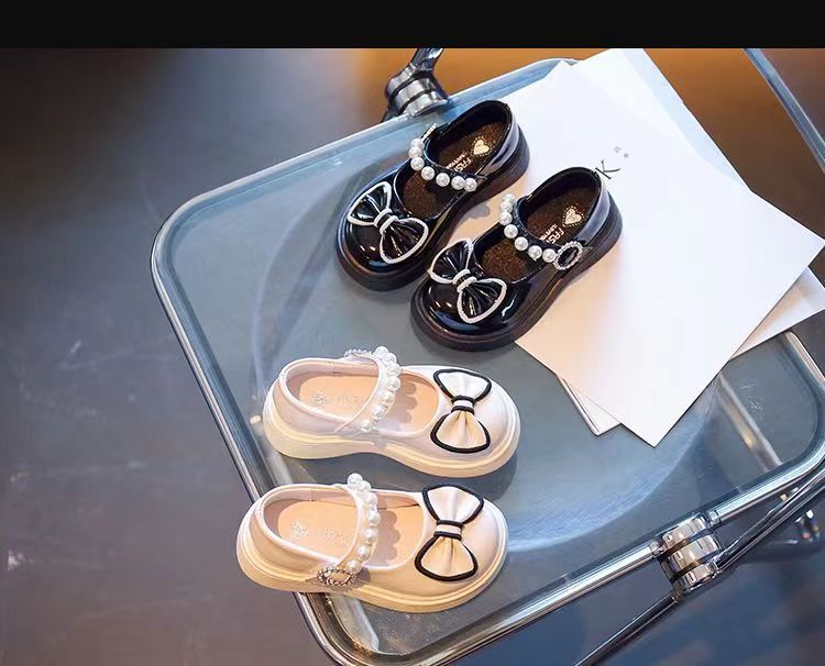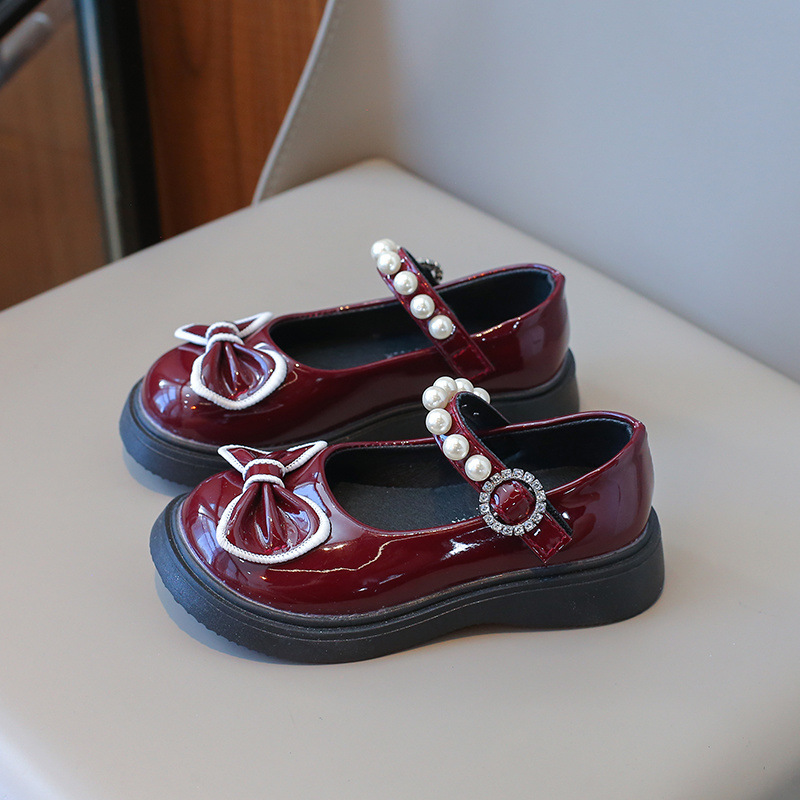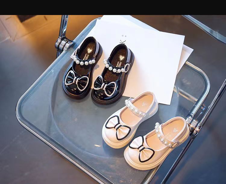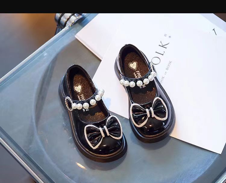 여자 특허 가죽 영국 스타일의 작은 가죽 신발 2025 봄 새로운 활 로퍼 어린이 진주 블랙 싱글 레이어 신발