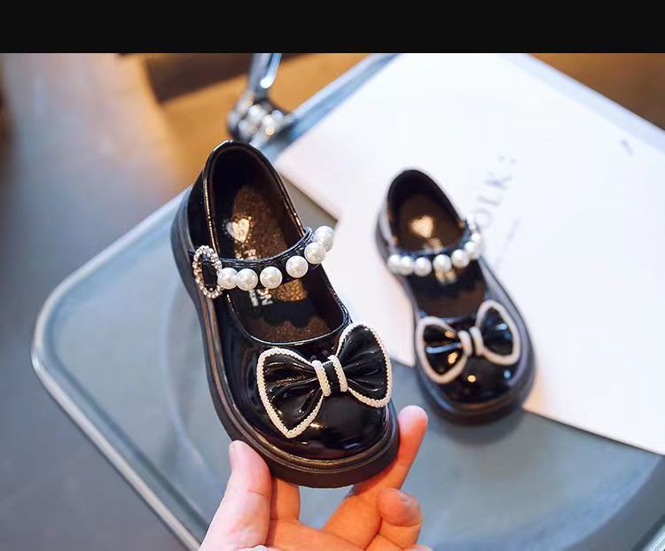 여자 특허 가죽 영국 스타일의 작은 가죽 신발 2025 봄 새로운 활 로퍼 어린이 진주 블랙 싱글 레이어 신발스토어 가기