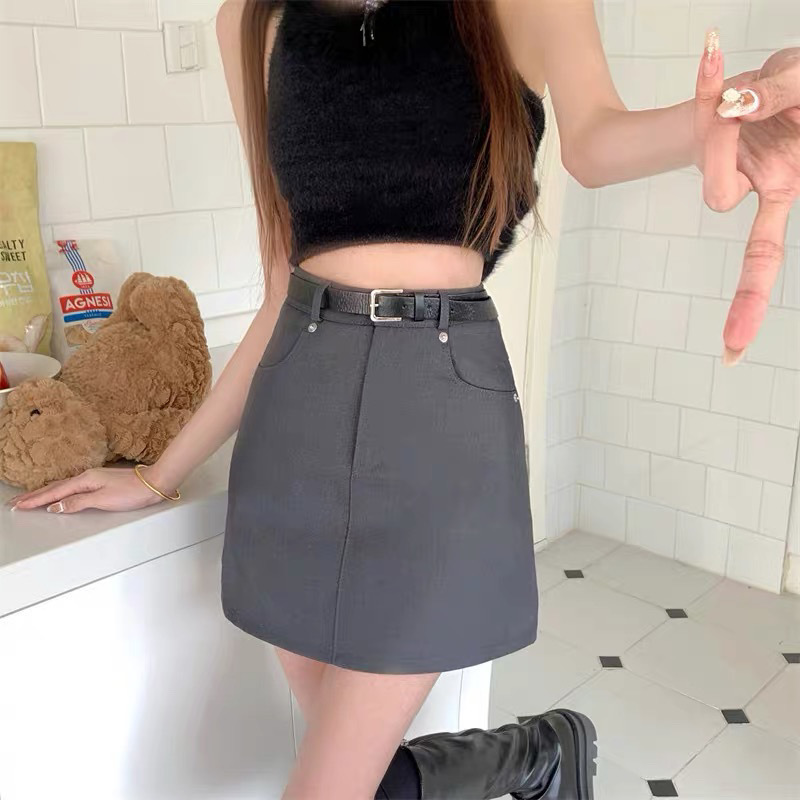 회색 높은 허리 엉덩이 스커트 2025 새로운 여성의 작은 우아한 슬리밍 올 매치 힙합 커버 하프 길이 스커트스토어 가기