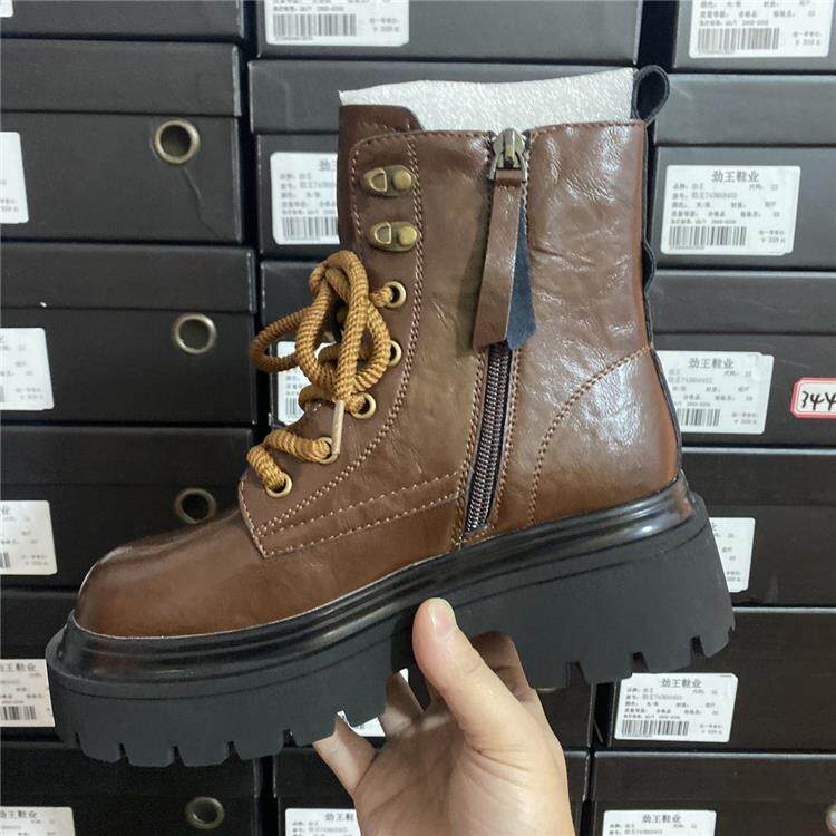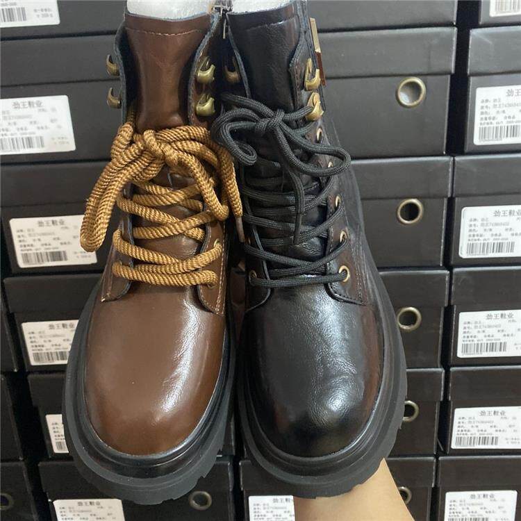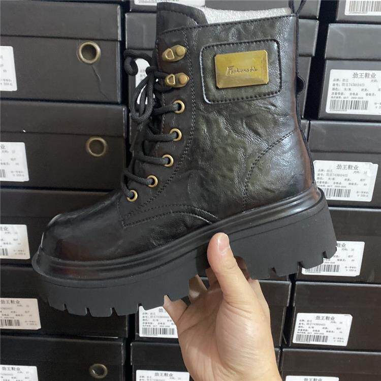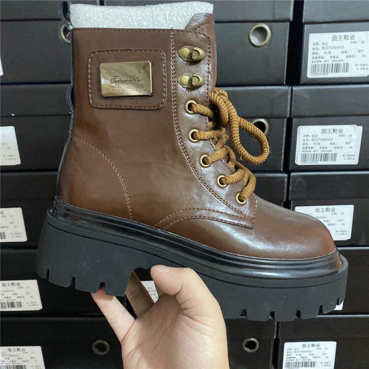 6cm 유행 핸드 헬드 헤드 레이어 Cowhide 철수 내각 겨울 기모 마틴 부츠 여성 두꺼운 바닥 오토바이 레트로 짧은 여성 높이 증가스토어 가기