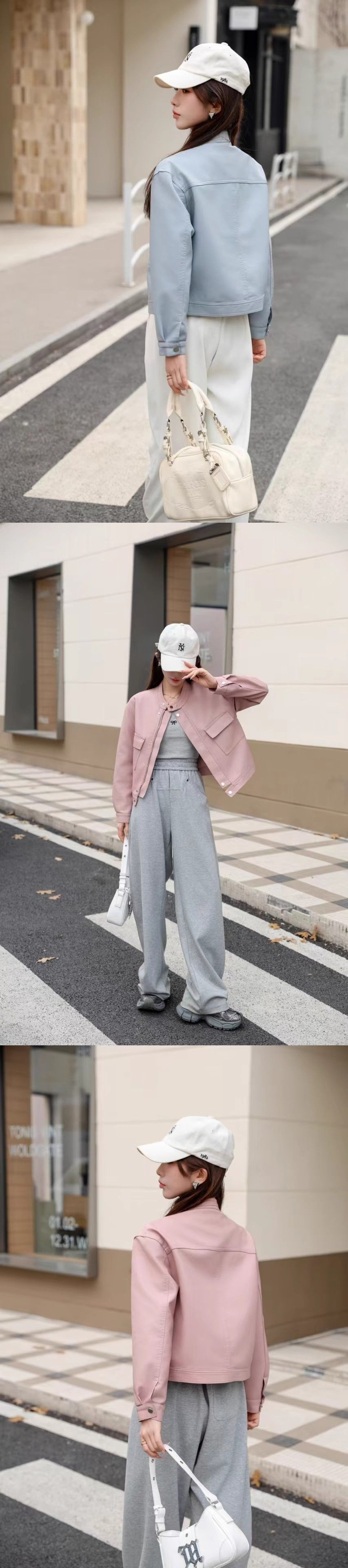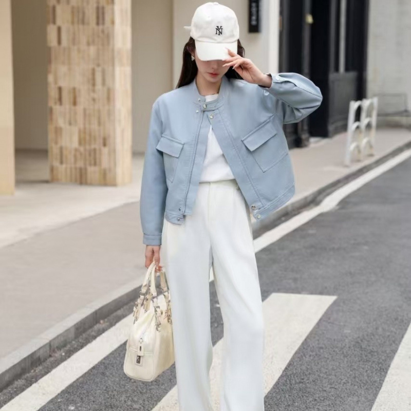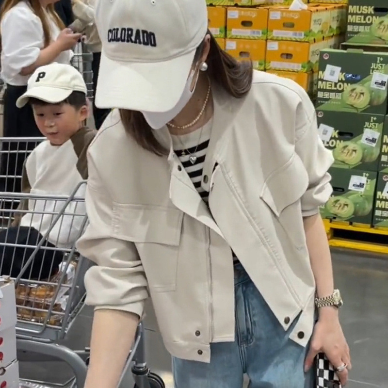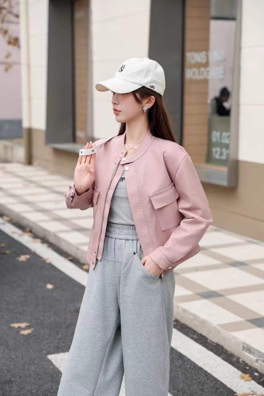 2025 봄과 가을 새로운 캐주얼 작은 가죽 자켓 여성의 느슨한 슬리밍 퍼가죽 바이커 의류 패션 짧은 재킷스토어 가기