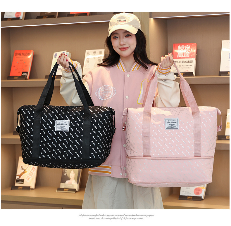 새로운 편지 전체 인쇄 여행 가방 건조하고 젖은 분리 대용량 스포츠 요가 수영 피트니스 가방 짧은 거리 더플 백