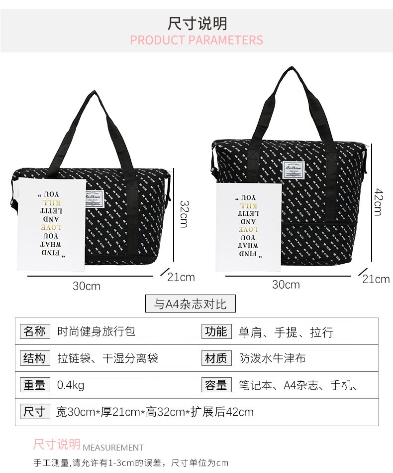 새로운 편지 전체 인쇄 여행 가방 건조하고 젖은 분리 대용량 스포츠 요가 수영 피트니스 가방 짧은 거리 더플 백스토어 가기