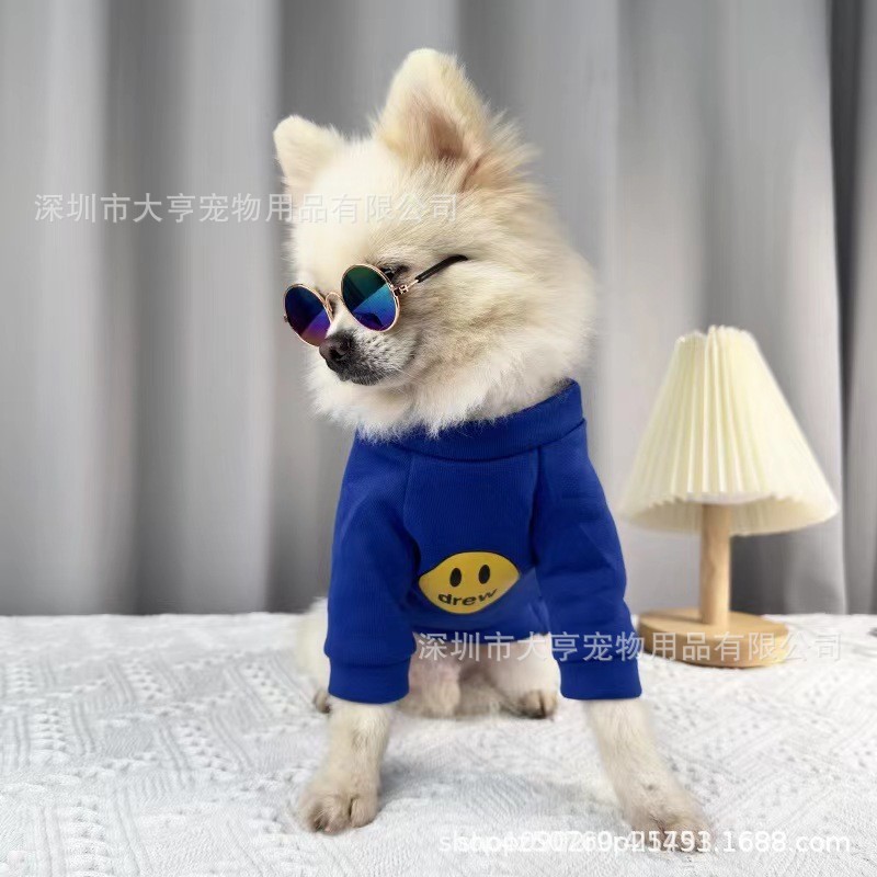 고양이 옷 가을 패션 브랜드 귀여운 영어 짧은 파란 고양이 가을과 겨울 아기 우유 고양이 애완 동물 고양이 옷 겨울 따뜻한