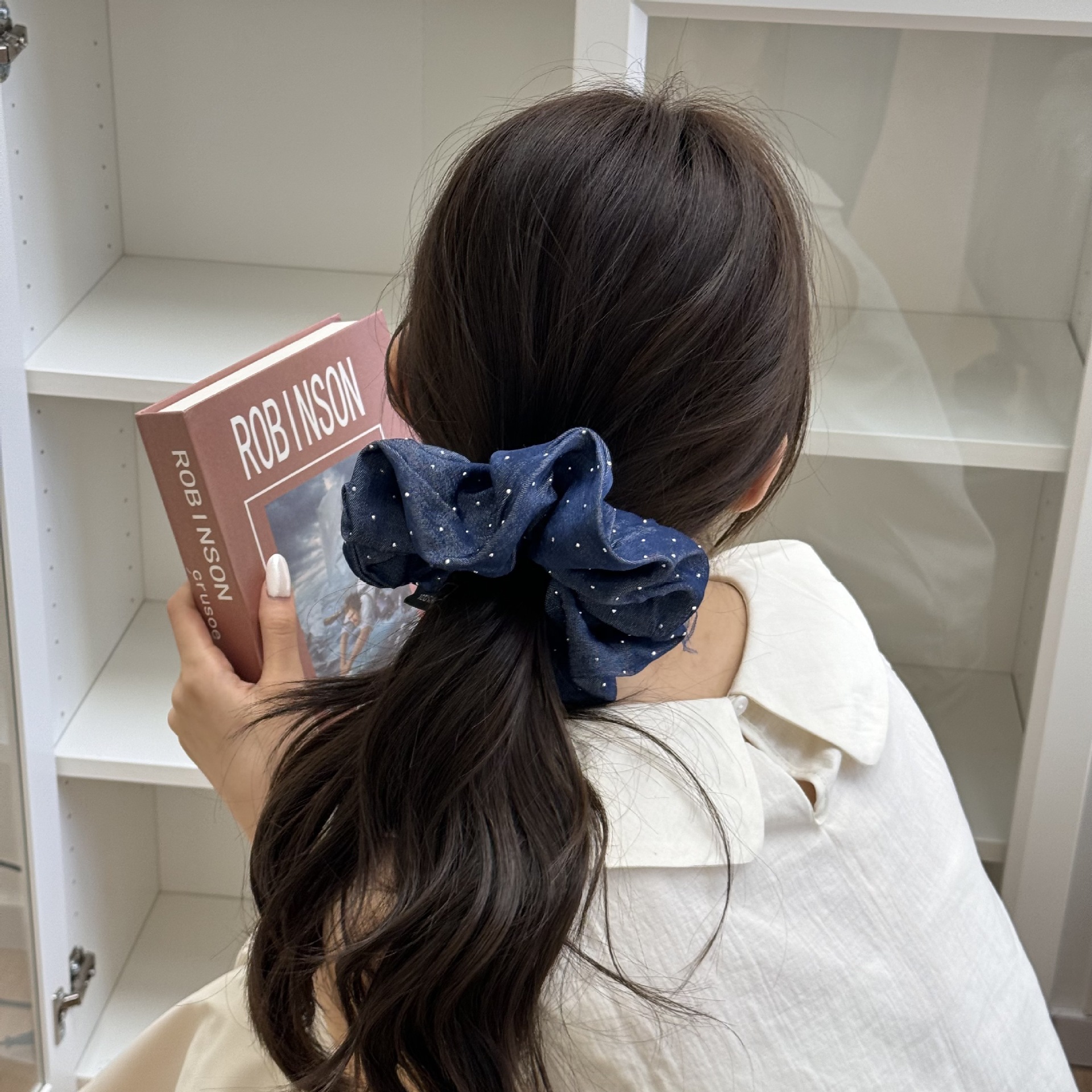 패브릭 레트로 데님 핫 드릴링 대장 헤어 링 높은 탄성 말꼬리 헤어 로프 2025 새로운 기질 헤어 로프 헤어 액세서리스토어 가기