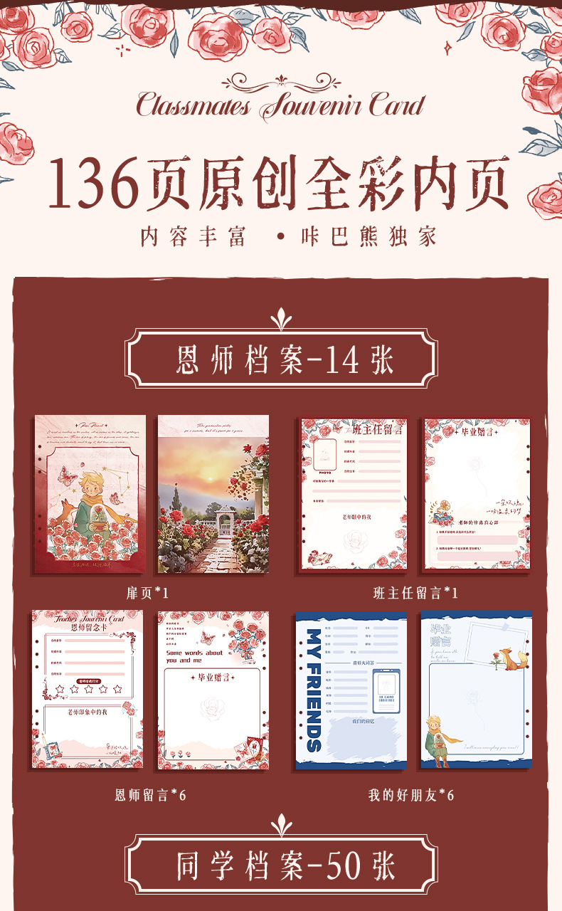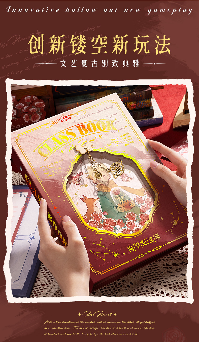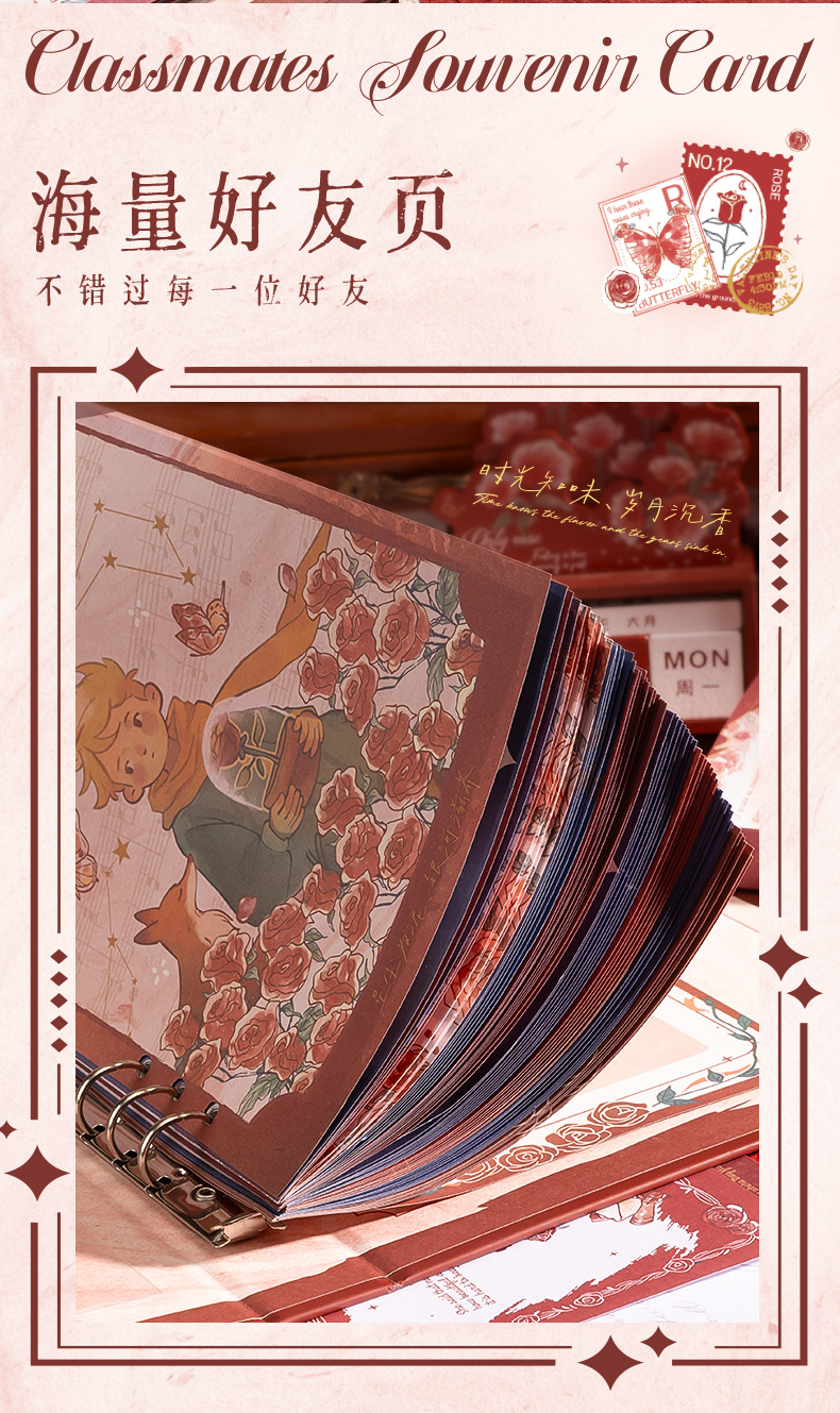 하이 얀 가치 동급생 기록 로즈 리틀 프린스 문학과 아트 레트로 루즈 잎 카드 북 초등학교 6 학년 졸업 기념 도서스토어 가기