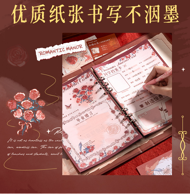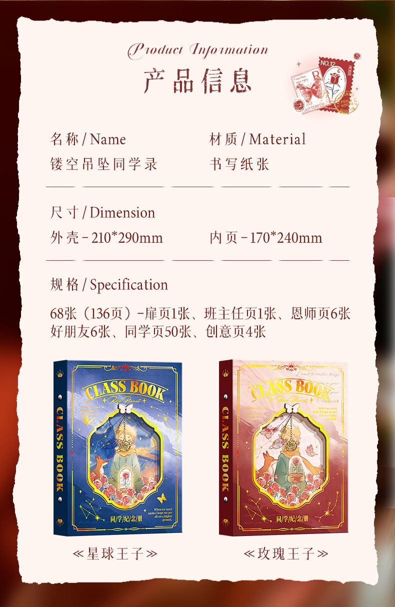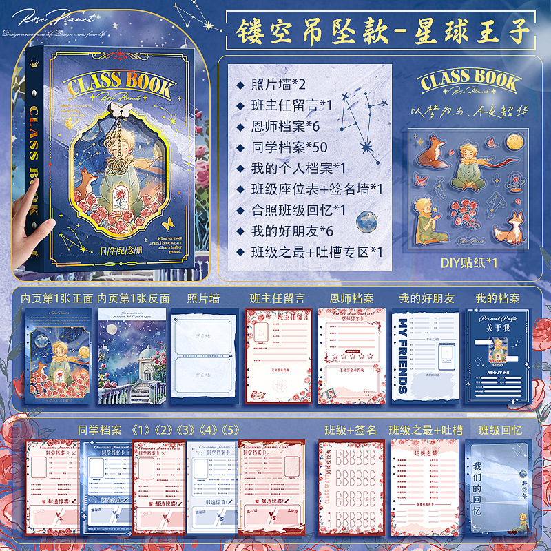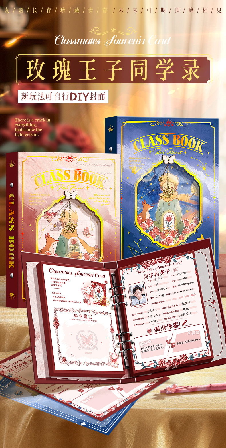 하이 얀 가치 동급생 기록 로즈 리틀 프린스 문학과 아트 레트로 루즈 잎 카드 북 초등학교 6 학년 졸업 기념 도서스토어 가기