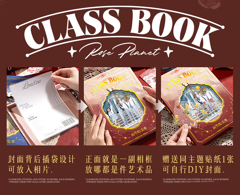 하이 얀 가치 동급생 기록 로즈 리틀 프린스 문학과 아트 레트로 루즈 잎 카드 북 초등학교 6 학년 졸업 기념 도서