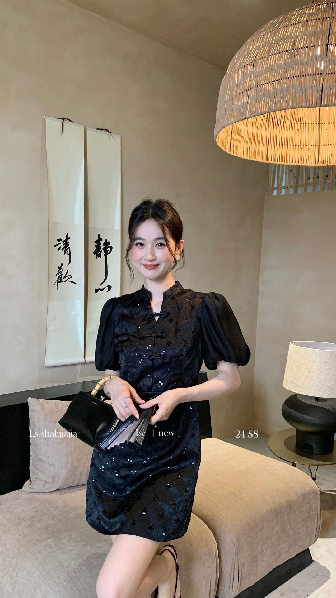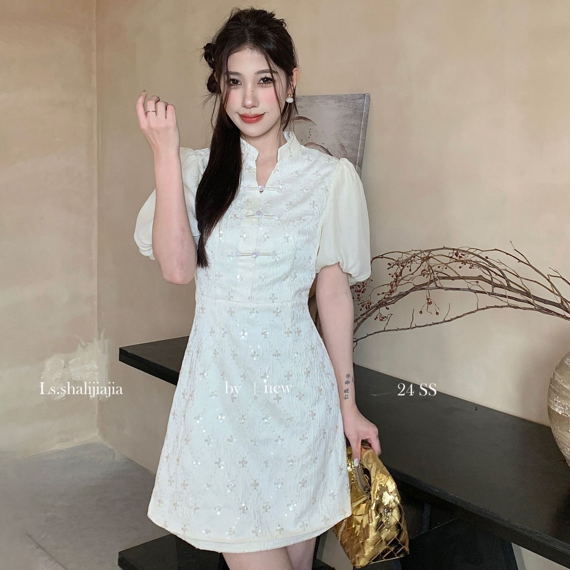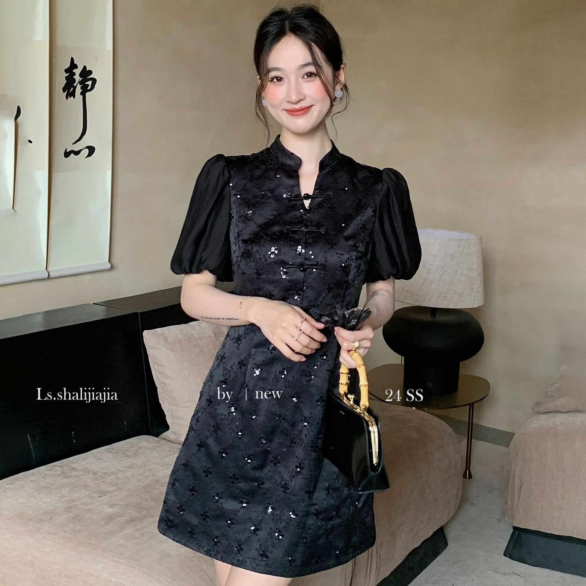 LS∼2025 년 봄 · 여름 신작 여성 쇼트스커트 절묘하고 우아한 하이 엔드 웨이스트 스퀸 원피스 21695