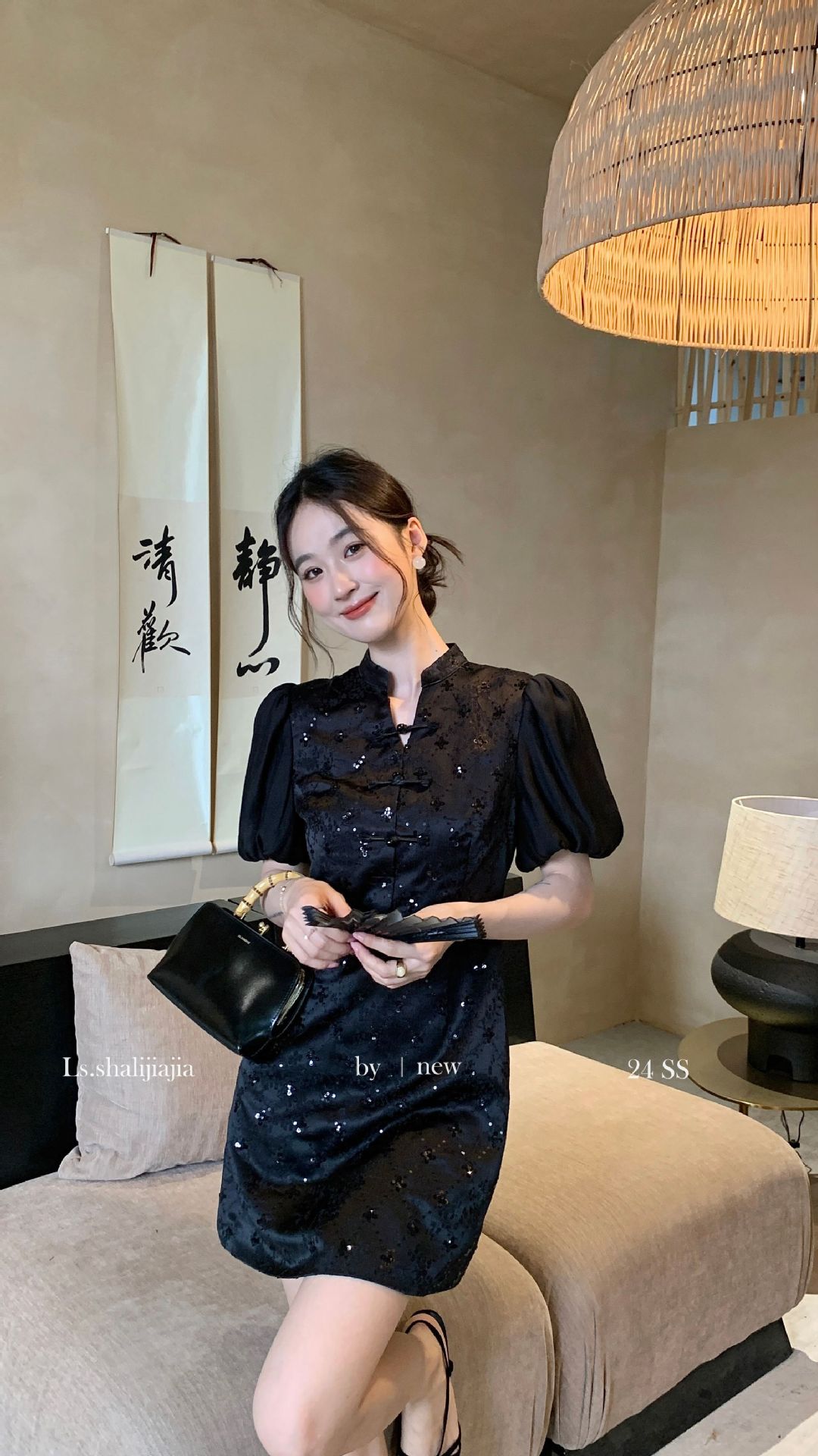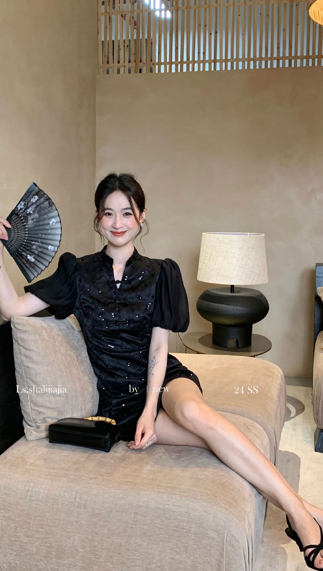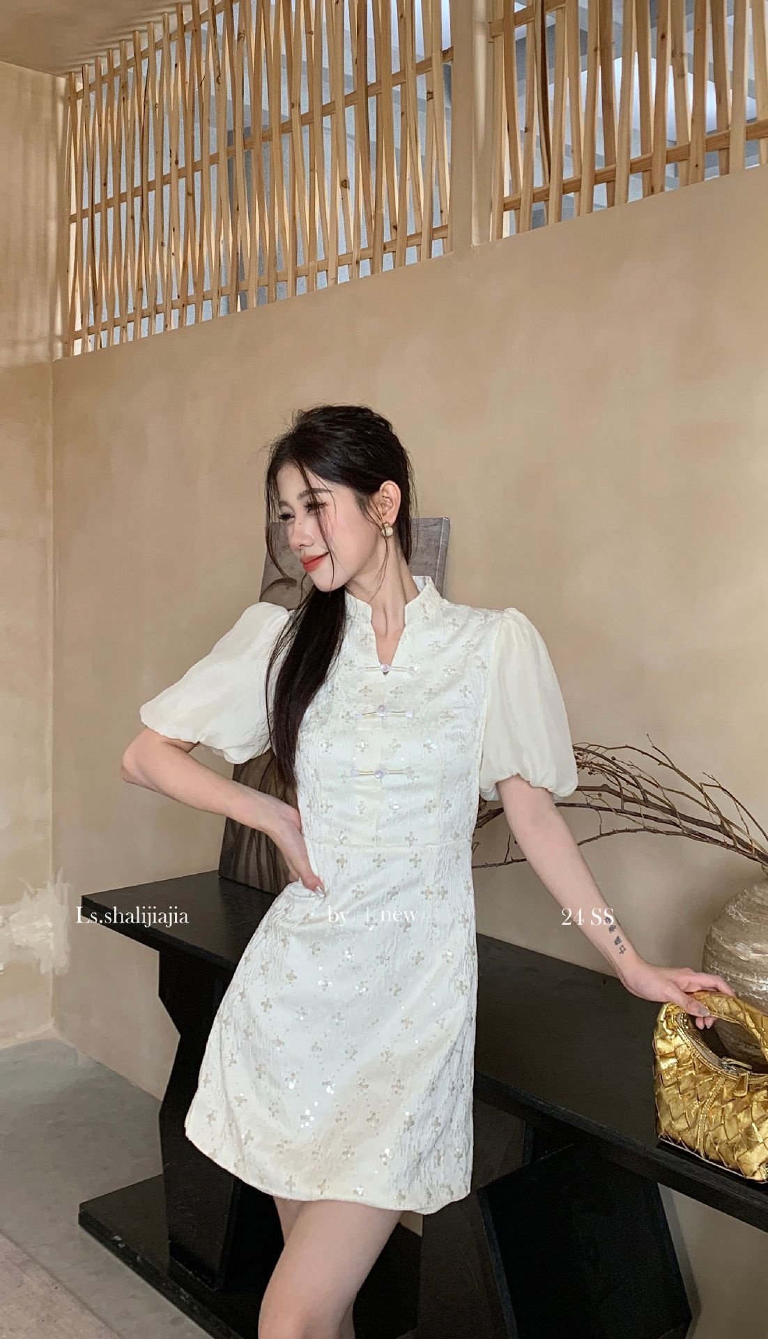 LS∼2025 년 봄 · 여름 신작 여성 쇼트스커트 절묘하고 우아한 하이 엔드 웨이스트 스퀸 원피스 21695