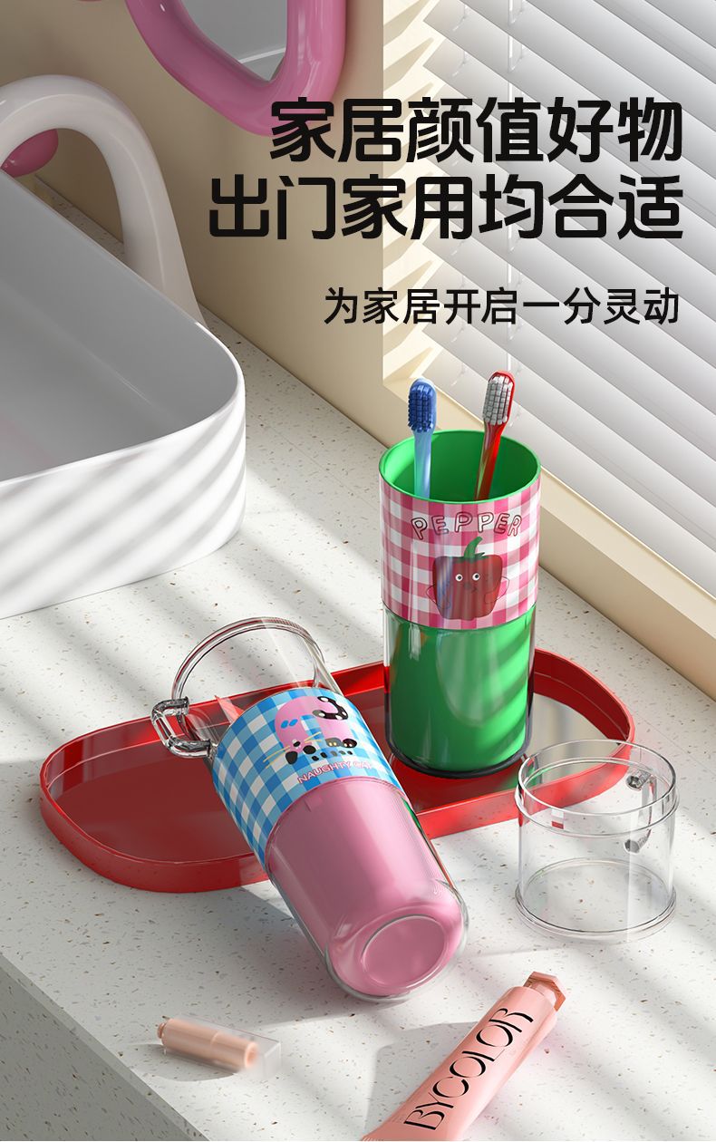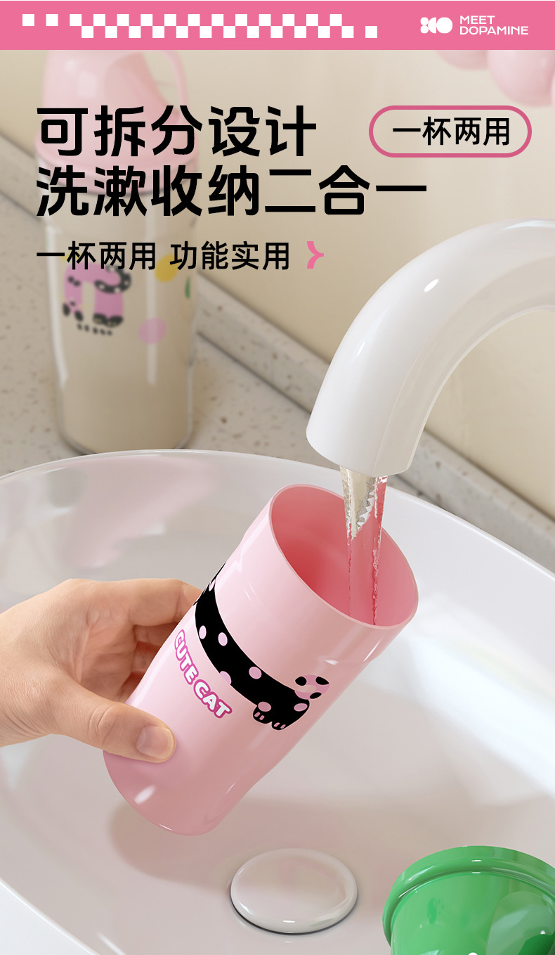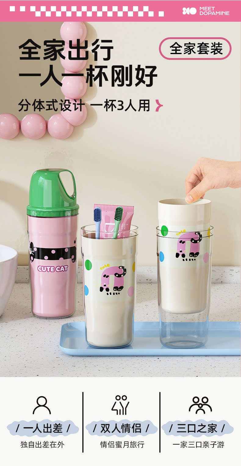 만화 도파민 여행 세척 컵 휴대용 칫솔 보관 상자 3 대 1 치과 구강 세척 컵 가정 학생