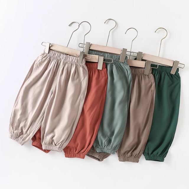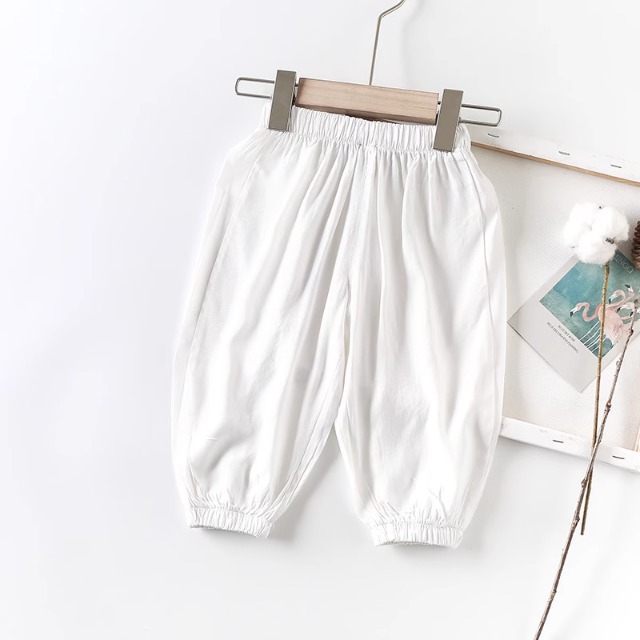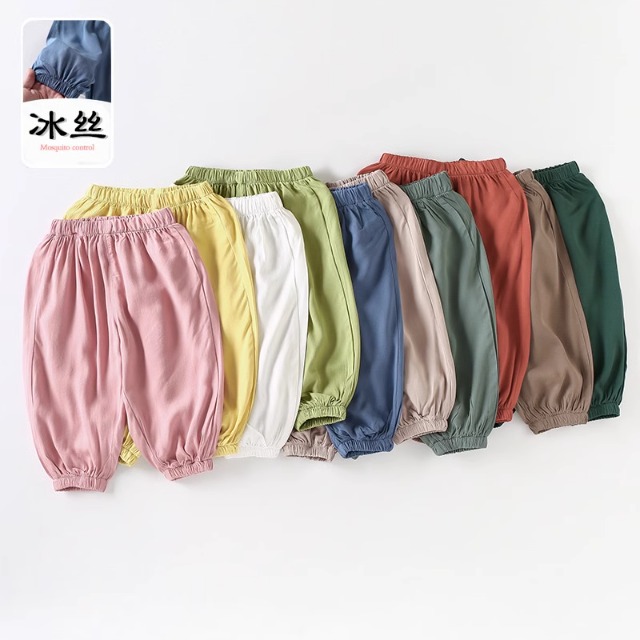 모기 방지 바지 여름 얇은 어린이 여름 아이스 실크 소녀 면화 및 리넨 블루머스 아기 바지 어린이 외출 바지