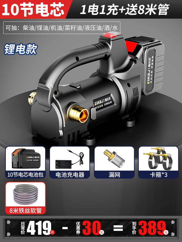 • 리튬 배터리 오일 펌프 [10셀] 배터리 1개, 1회 충전 + 무료 튜브 8m개