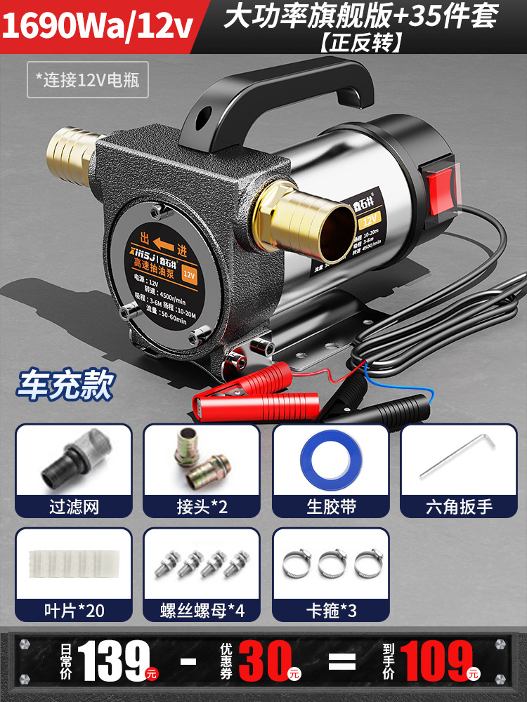 • [1690Wa] 고출력 플래그십 버전 12V [정역방향 + 8m 스틸 와이어 호스 + 35개 세트].
