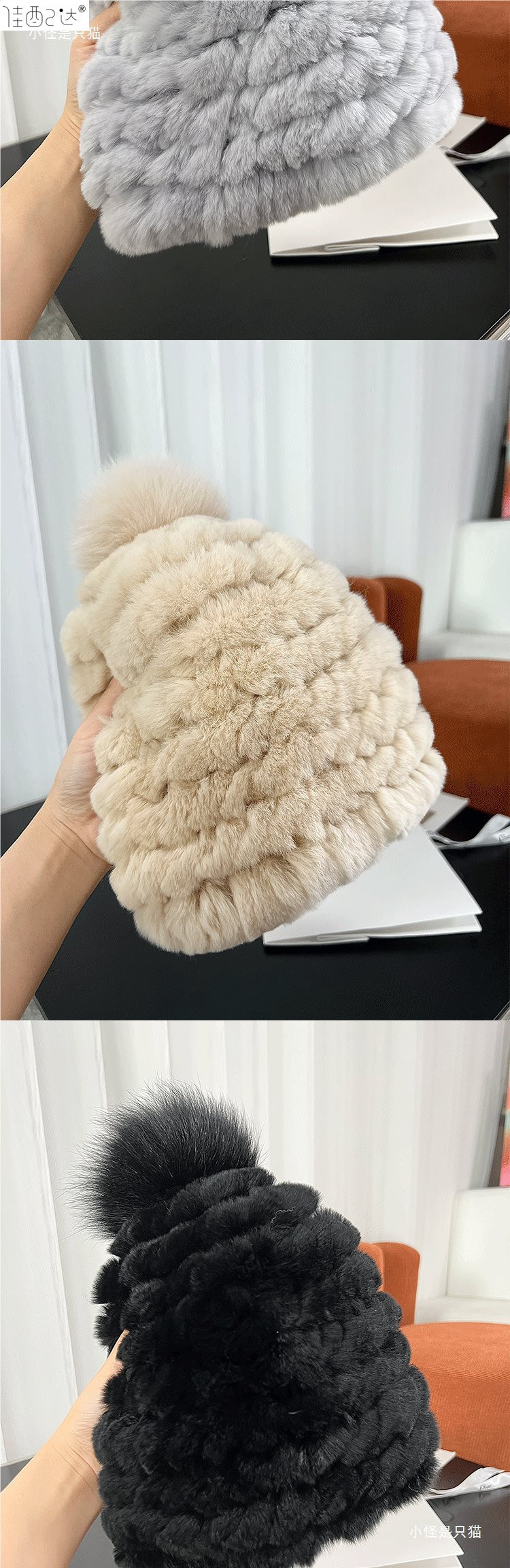 한국 진짜 렉스 토끼 모피 모자 두꺼운 모피 모자 감기 방지 따뜻한 귀 보호 모자 봉제 니트 모자 Baotou 모자