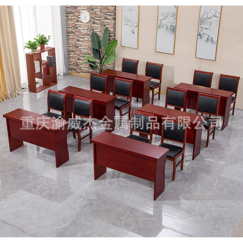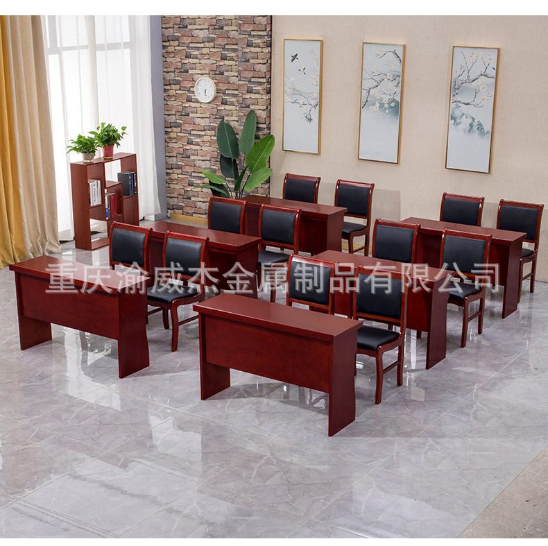 중국 페인트 회의 테이블 긴 테이블 훈련 테이블 단단한 나무 피부 코팅 회의 테이블 및 의자 조합 연구 테이블 책상 및 의자