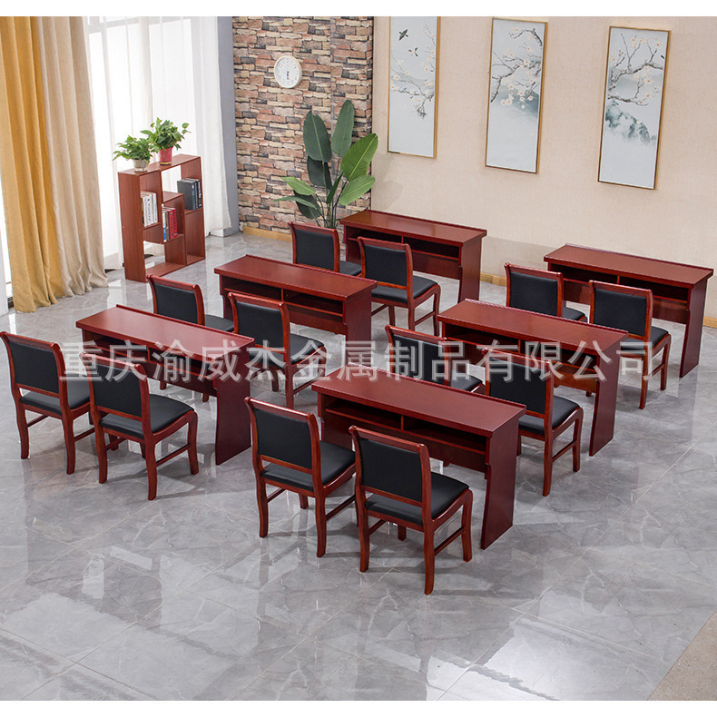 중국 페인트 회의 테이블 긴 테이블 훈련 테이블 단단한 나무 피부 코팅 회의 테이블 및 의자 조합 연구 테이블 책상 및 의자스토어 가기