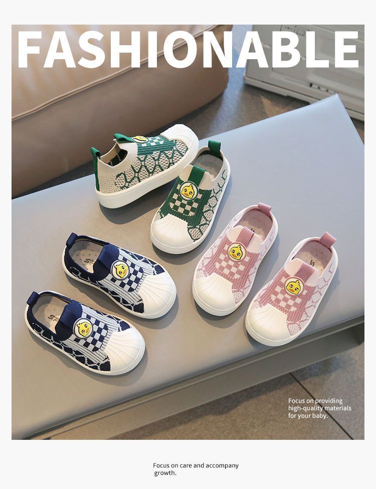어린이 보드 신발 봄 새로운 쉘 헤드 소년 소녀 비행 짠 신발 통기성 빛 부드러운 바닥 아기 캐주얼 운동화