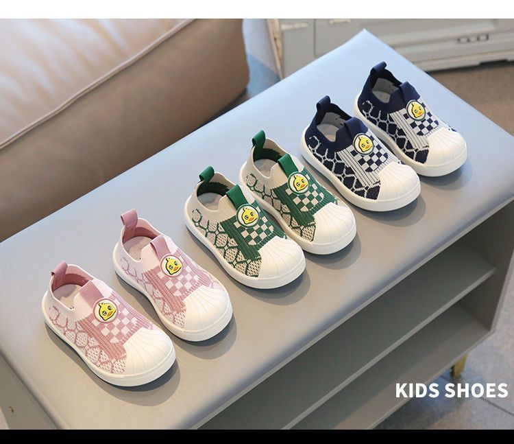 어린이 보드 신발 봄 새로운 쉘 헤드 소년 소녀 비행 짠 신발 통기성 빛 부드러운 바닥 아기 캐주얼 운동화스토어 가기