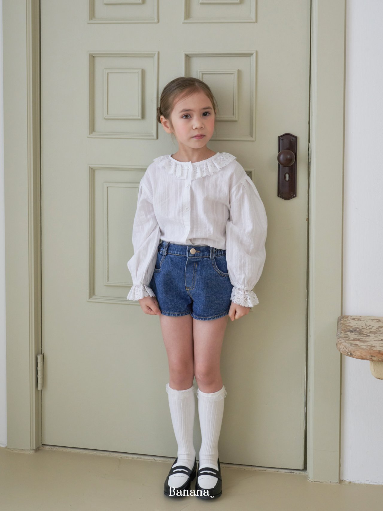 한국식 아동복 2025 여름 새 중소형 소녀의 꽃 심플 클래식 캐주얼 유행 기본 데님 반바지