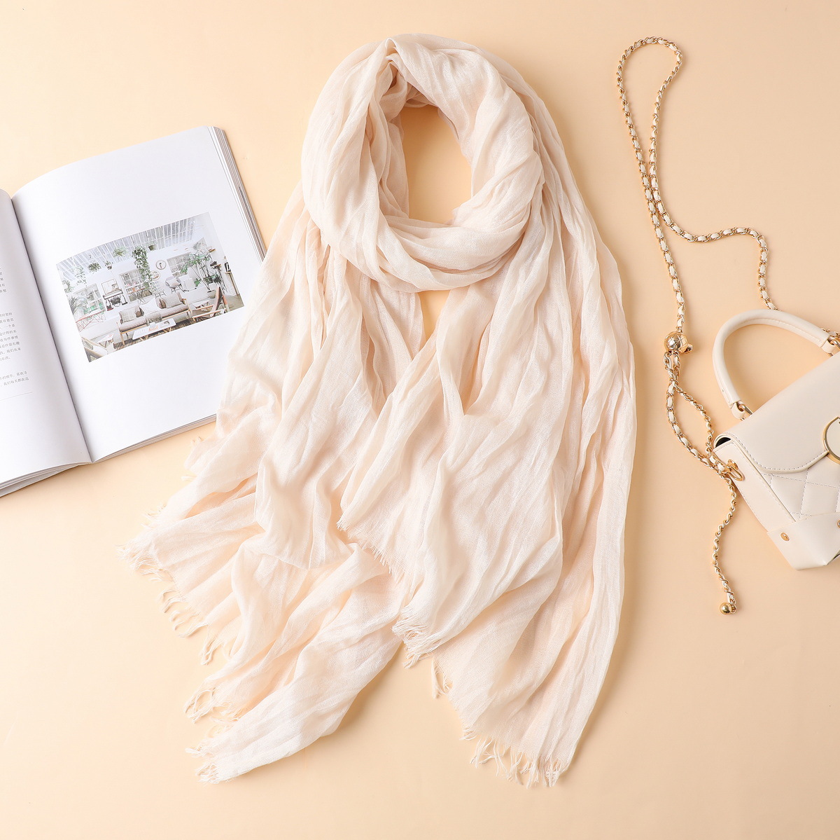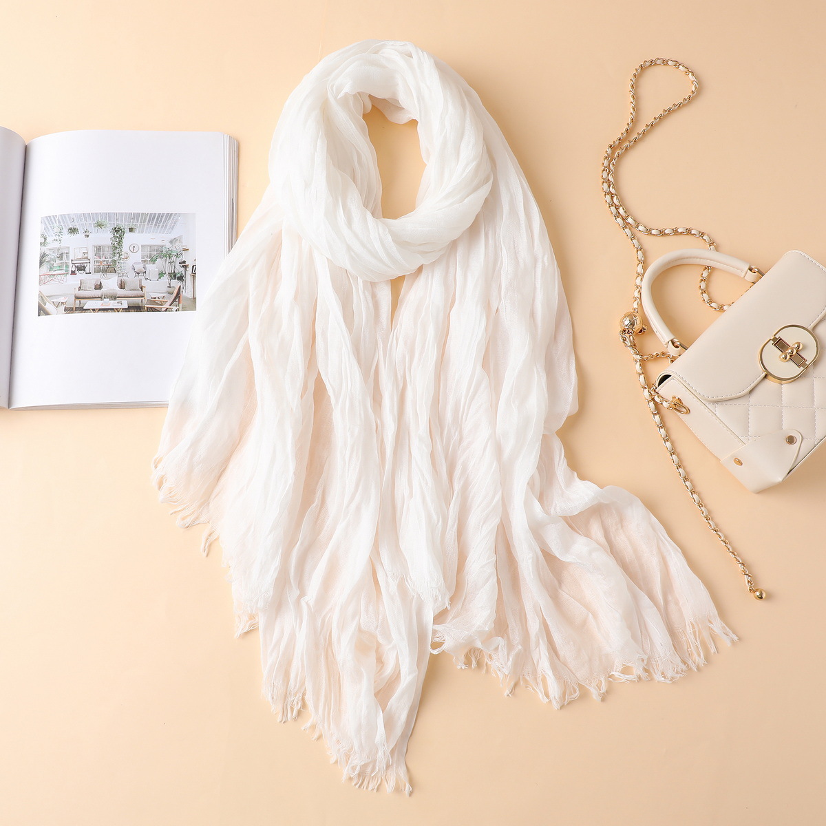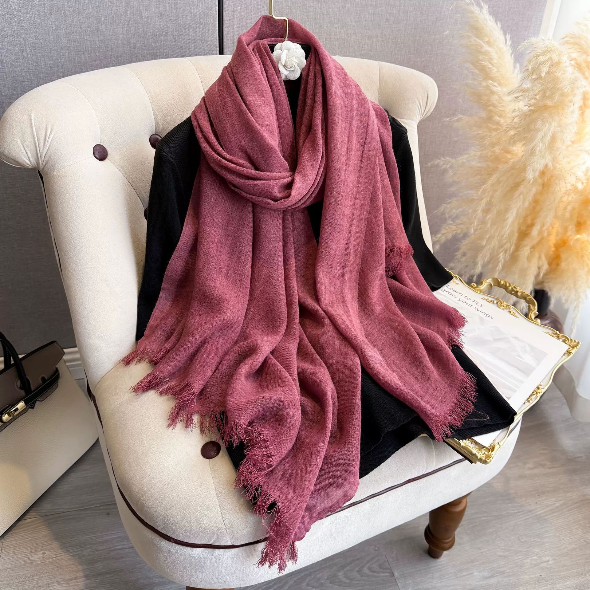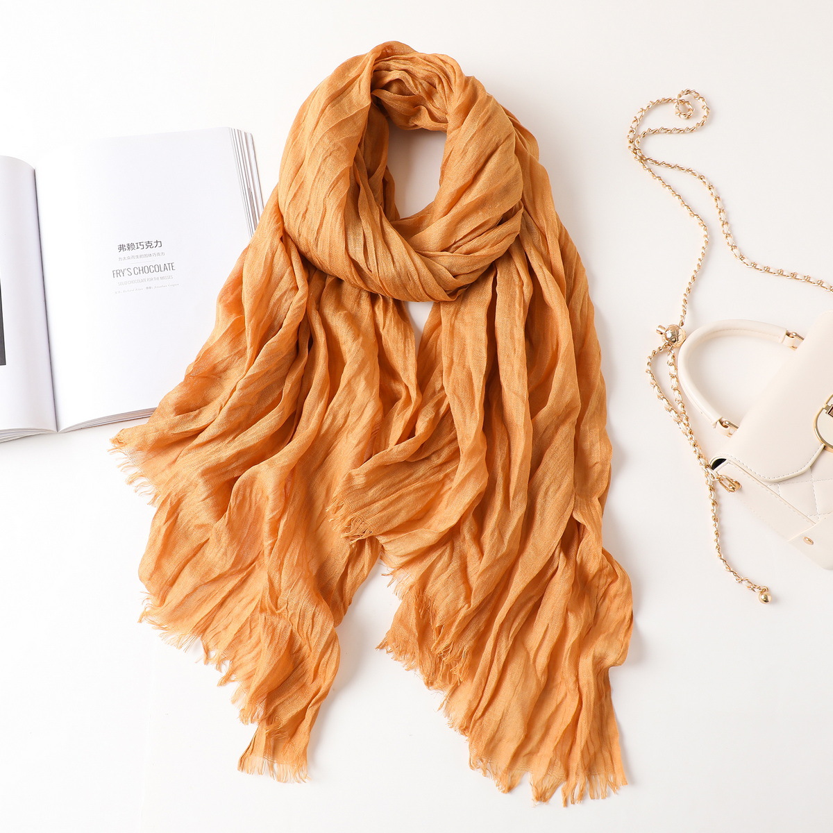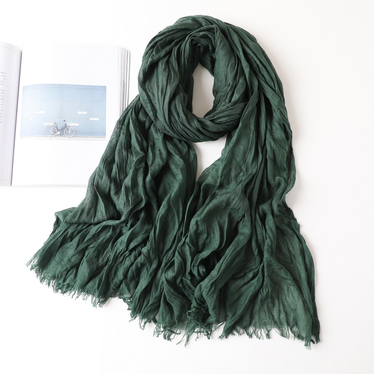새로운 한국식 면화 및 리넨 스카프 여성 봄과 여름 올 매치 단색 긴 목도리 예술적 캐주얼 얇은 선스크린 스카프스토어 가기