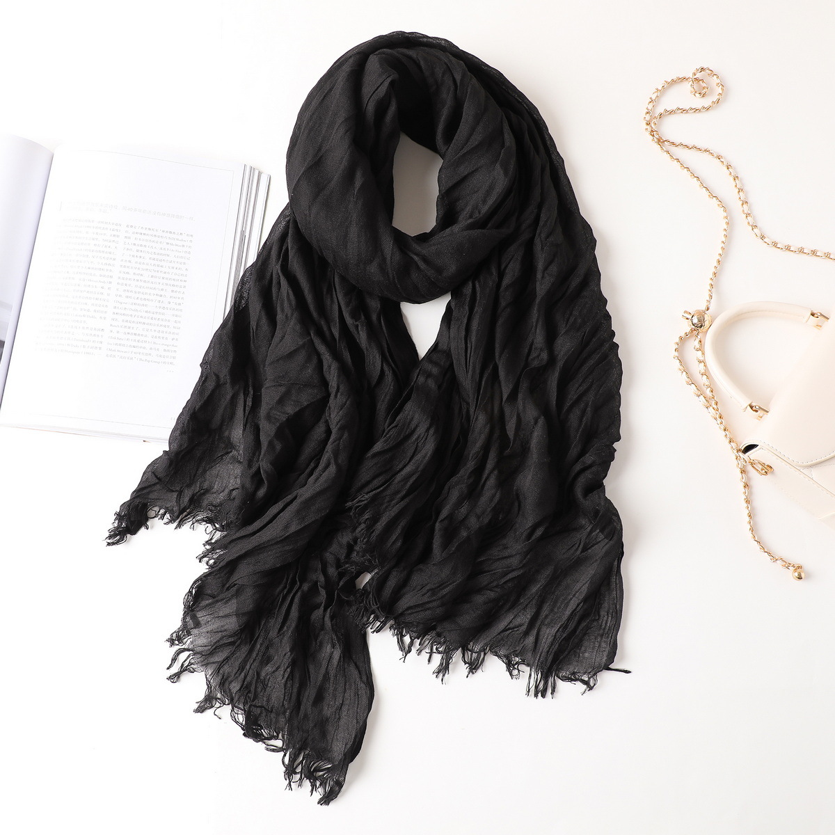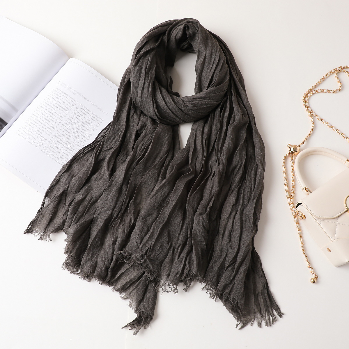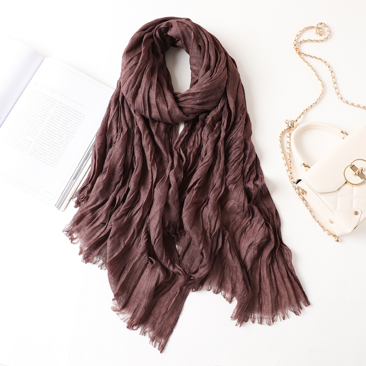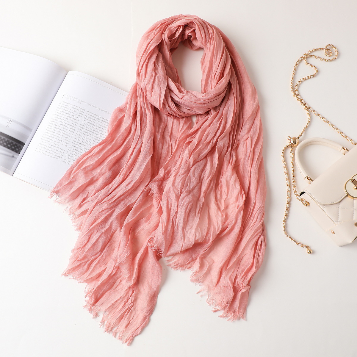 새로운 한국식 면화 및 리넨 스카프 여성 봄과 여름 올 매치 단색 긴 목도리 예술적 캐주얼 얇은 선스크린 스카프