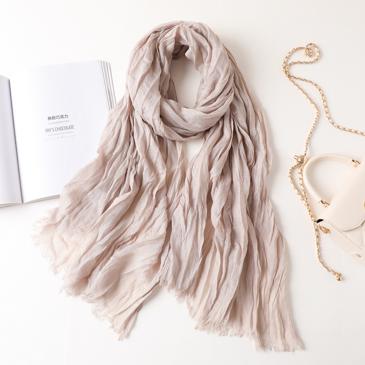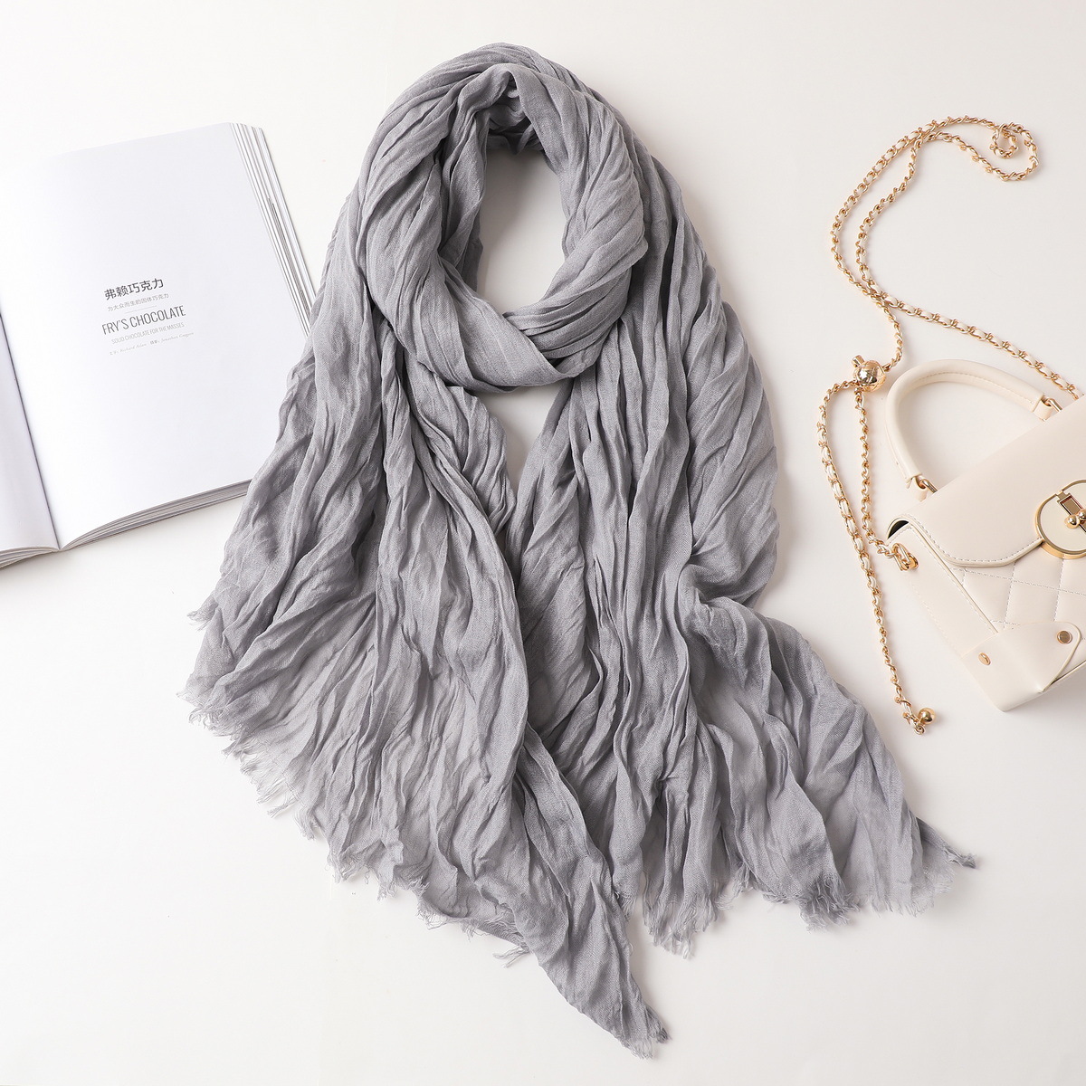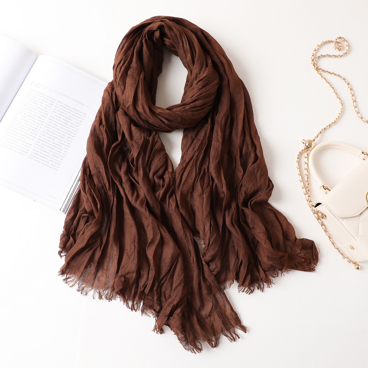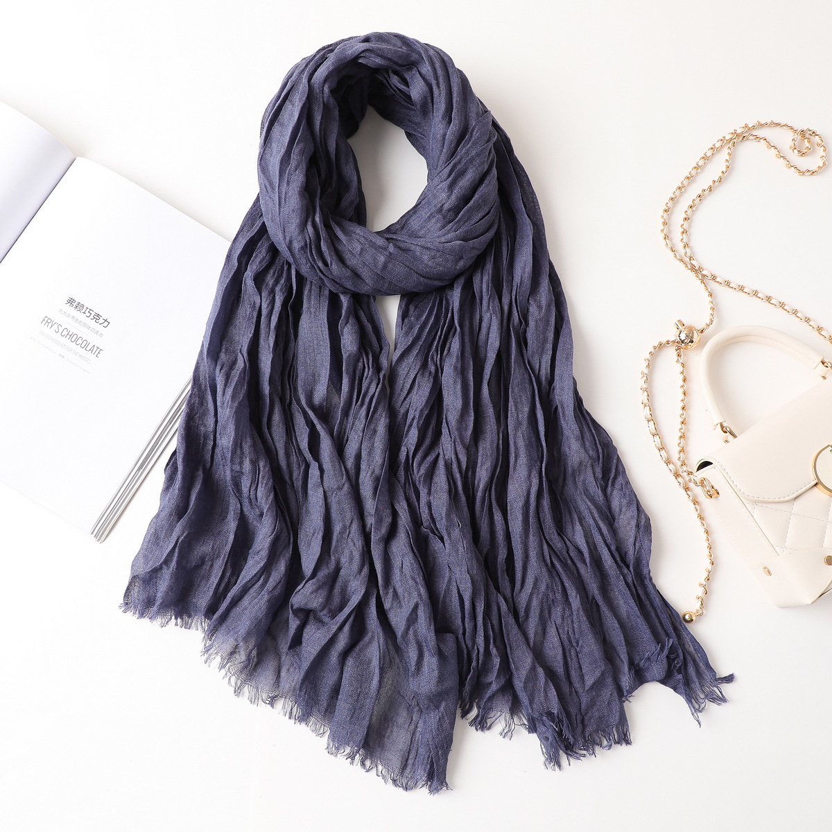 새로운 한국식 면화 및 리넨 스카프 여성 봄과 여름 올 매치 단색 긴 목도리 예술적 캐주얼 얇은 선스크린 스카프