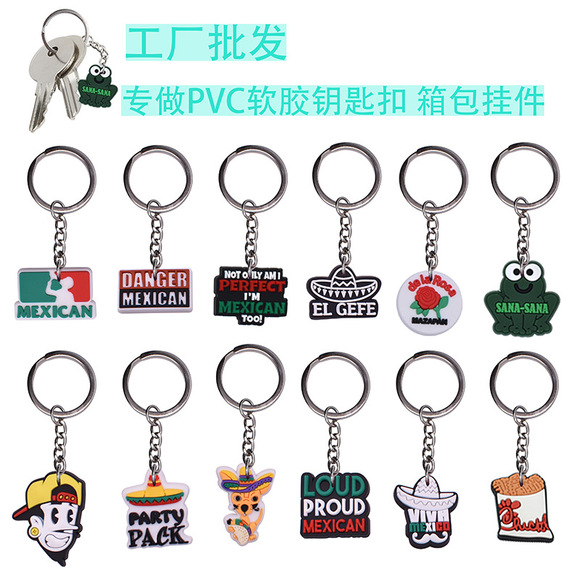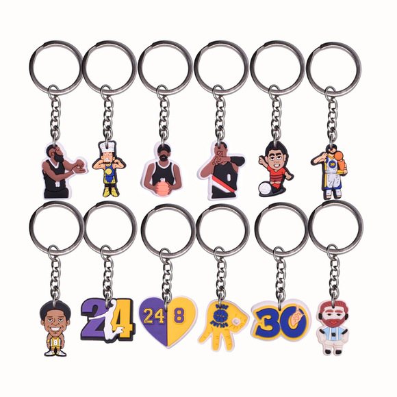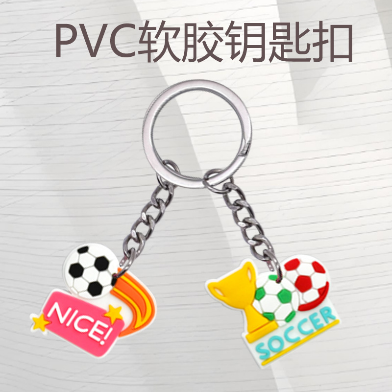 국경 간 핫 푸시 PVC 소프트 고무 축구 키 체인 작은 펜던트 도매 만화 키 펜던트 가방 매달려 버클 장식