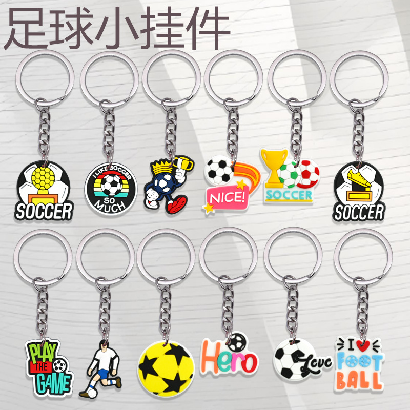 국경 간 핫 푸시 PVC 소프트 고무 축구 키 체인 작은 펜던트 도매 만화 키 펜던트 가방 매달려 버클 장식스토어 가기
