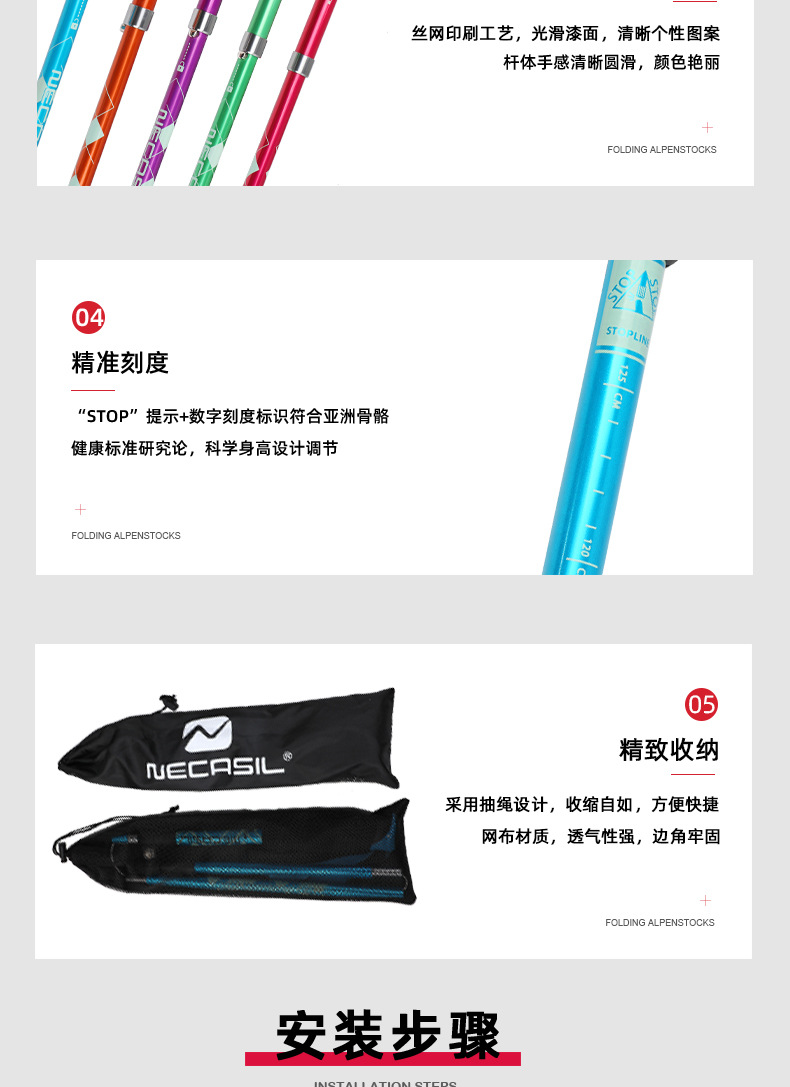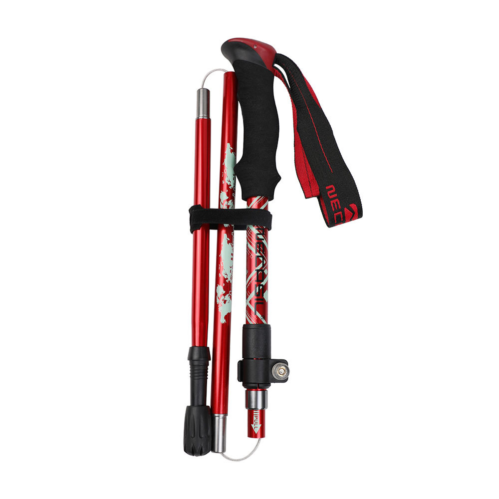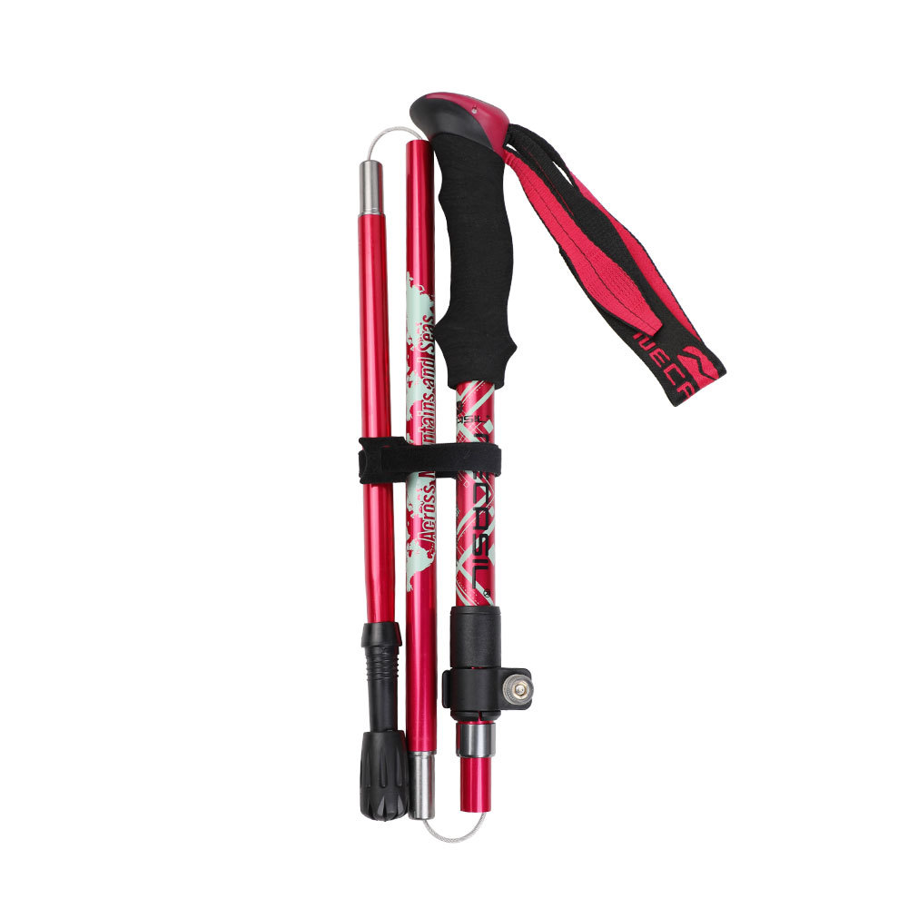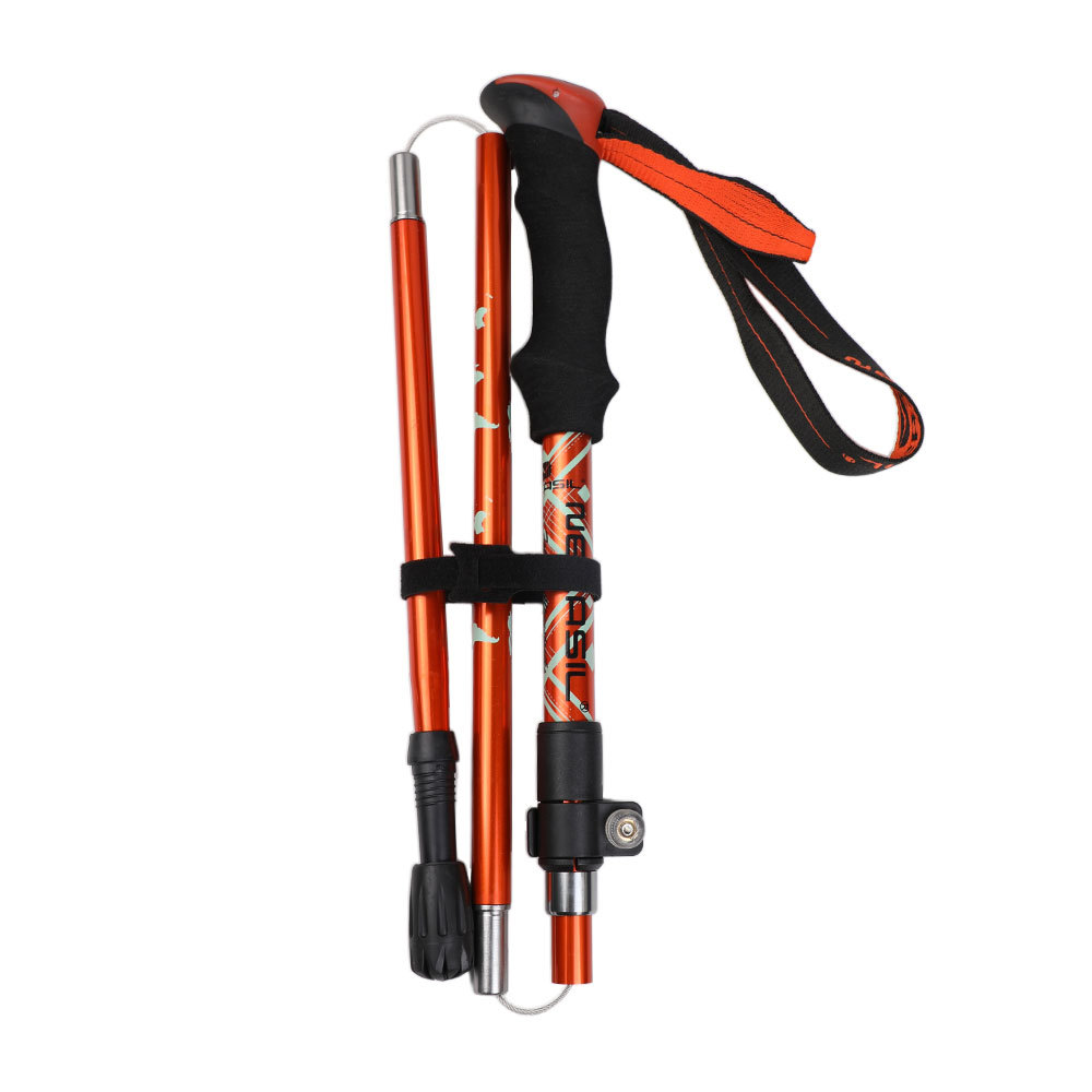 뜨거운 판매 알루미늄 합금 5 섹션 접이식 하이킹 스틱 야외 등산 장비 공급 노인을위한 초경량 하이킹 목발