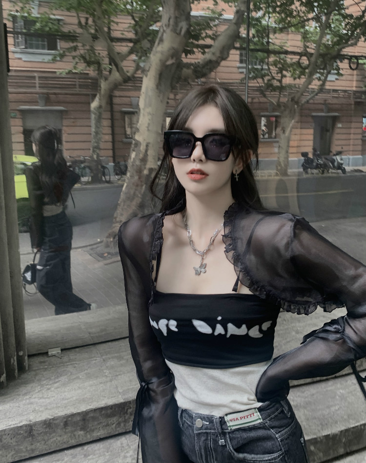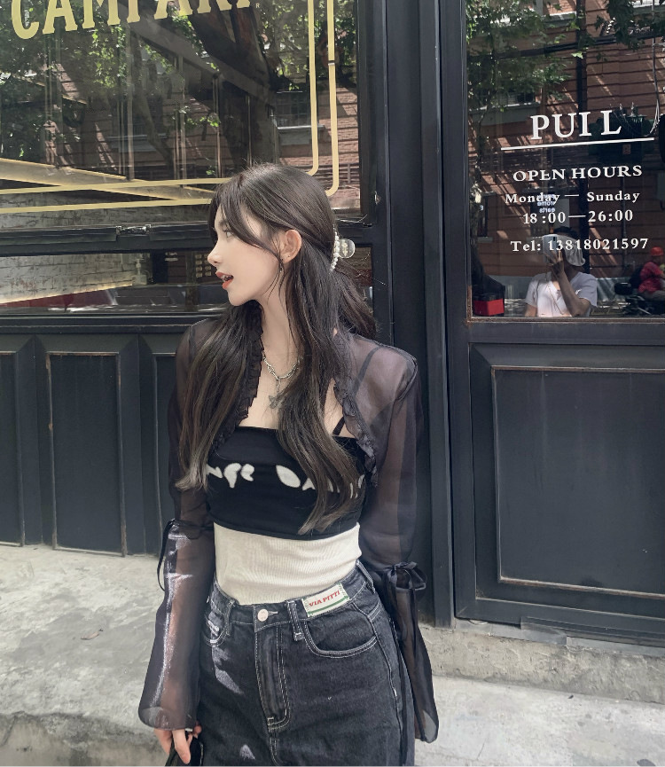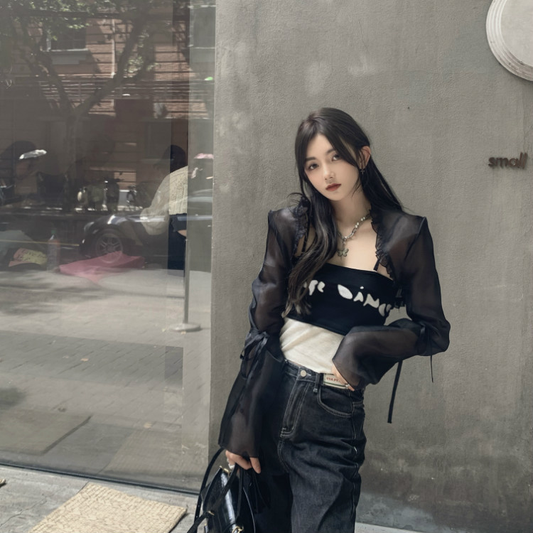 아이스 실크 태양 보호 의류 여성용 얇은 카디건 웨이스트 코트 여름 슬링 스커트 외부 짧은 쉬폰 블라우스
